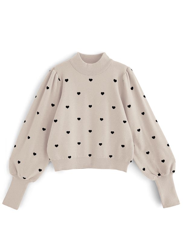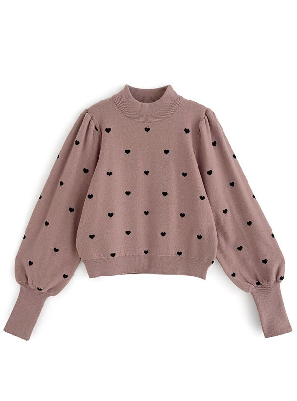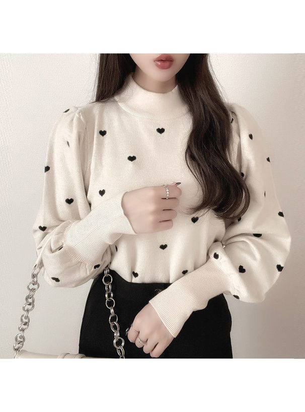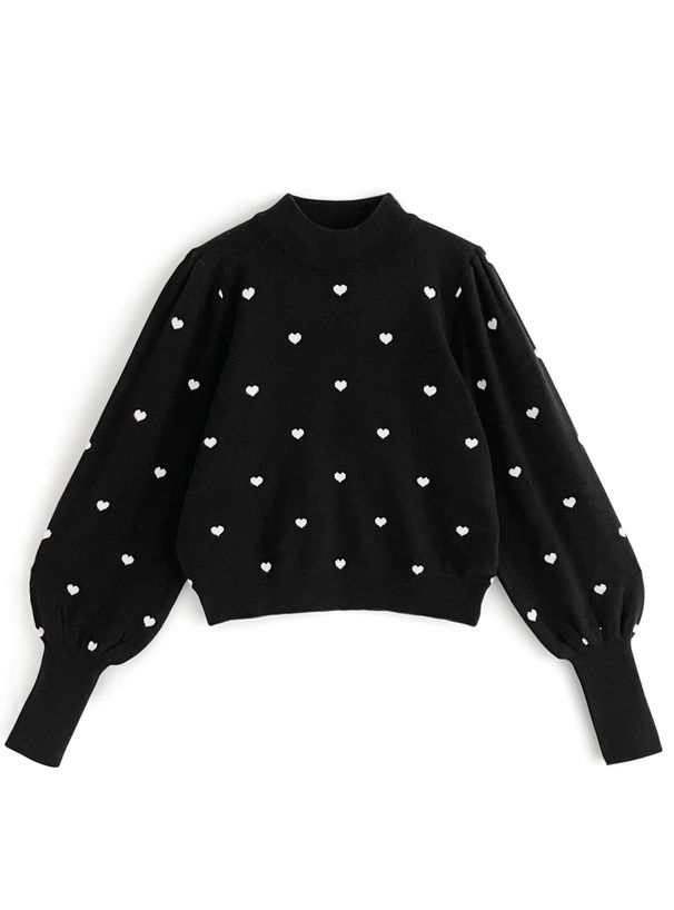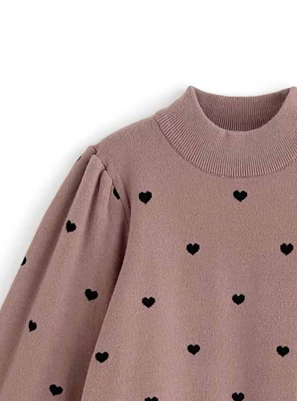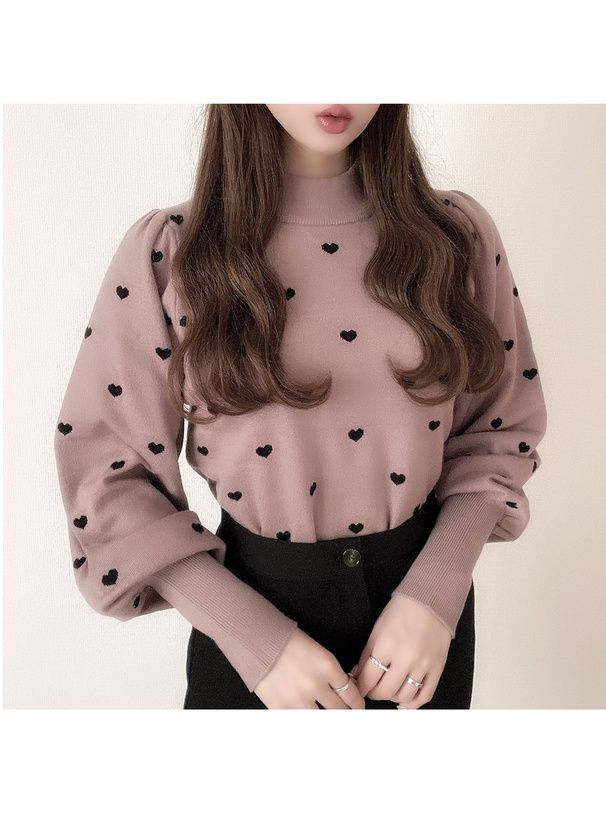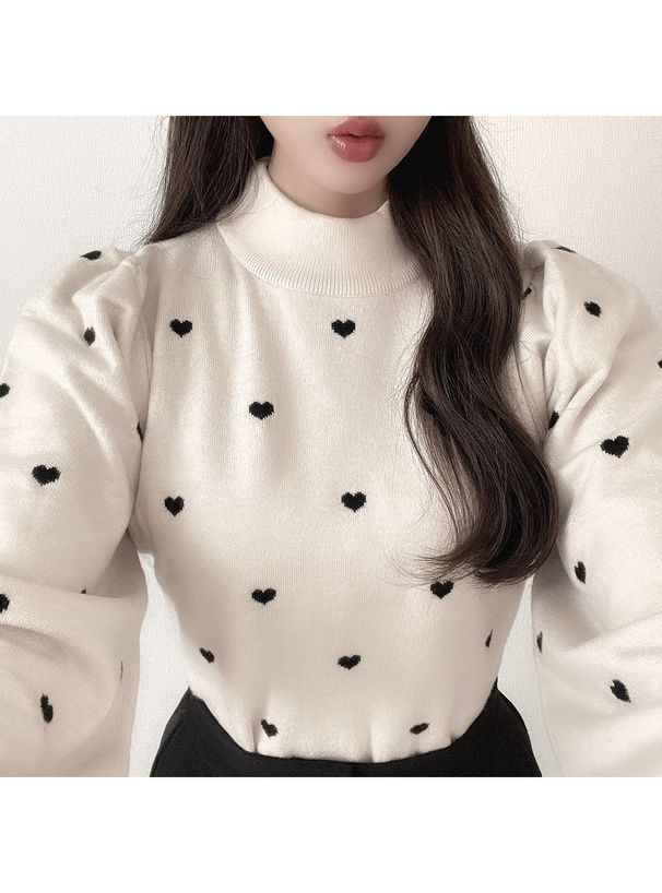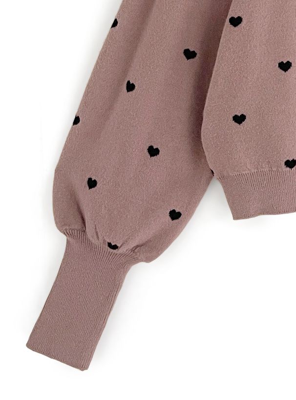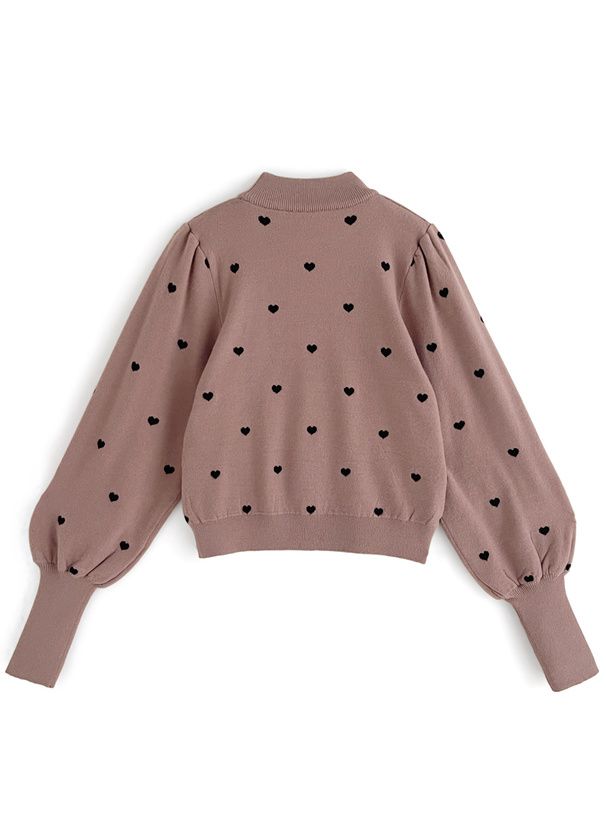 • 品名:甜美愛心小立領宮廷袖針織上衣