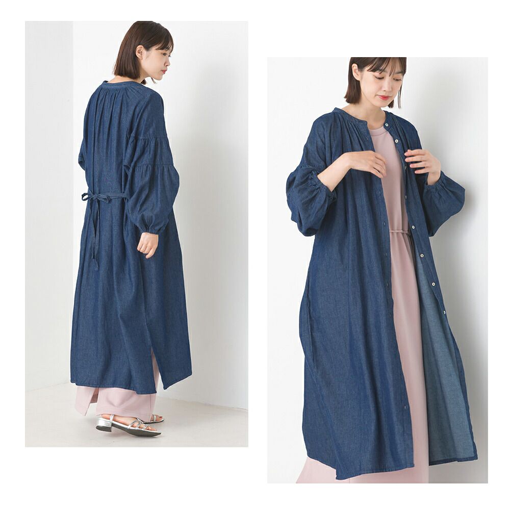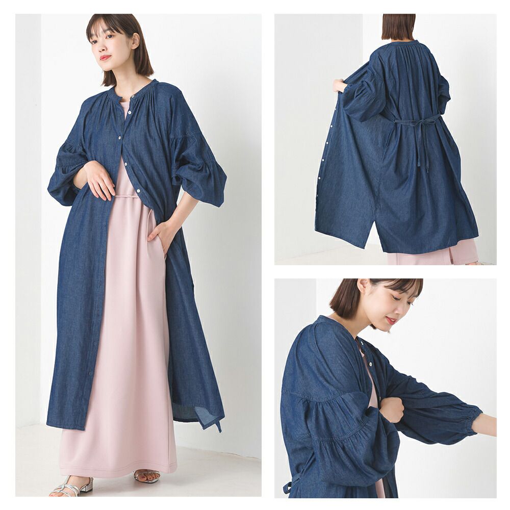 2way圓領排扣丹寧長袖洋裝/開襟衫