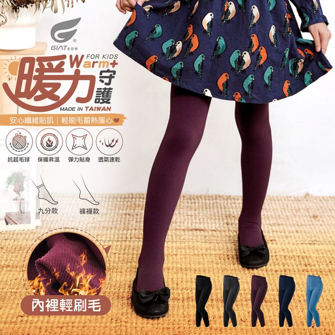 GIAT - 女童輕刷毛彈力連腳褲襪-墨黑