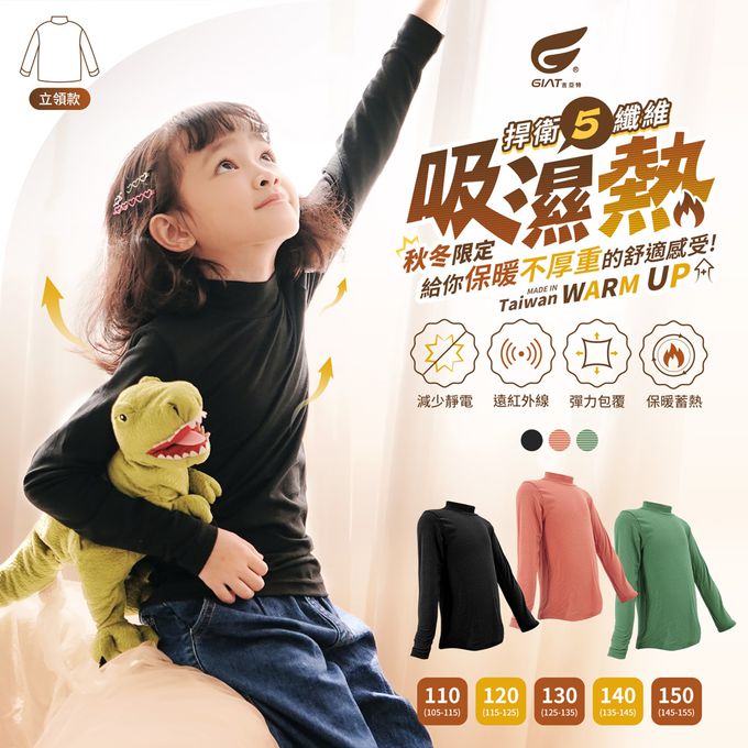 GIAT - 兒童五夠暖吸濕發熱衣-立領-橘條