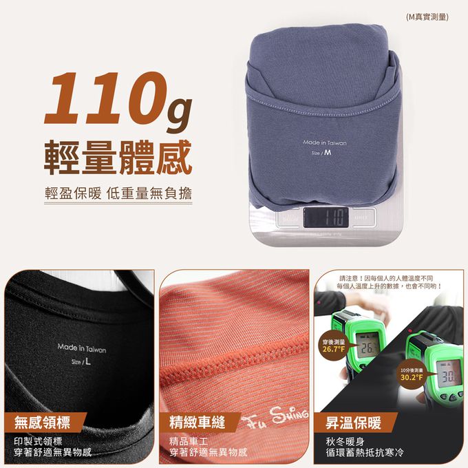 材質:19%台灣莫代爾纖維 22%遠紅外線負離子雙效聚酯纖維 19%中空保溫聚酯纖維 5%吸濕發熱聚丙烯酸醋纖維 29%棉 6%彈性纖維