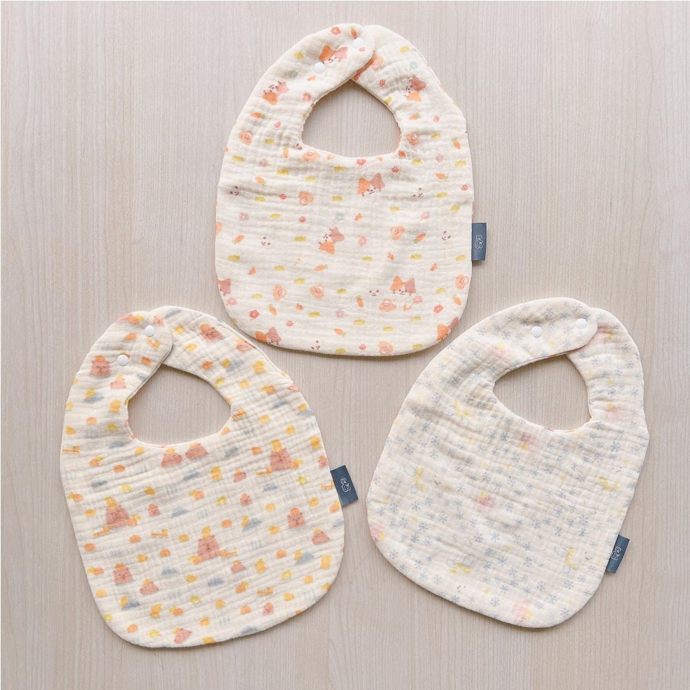 六層紗雙面手繪純棉圍兜3件組 (20.5x26.5CM)