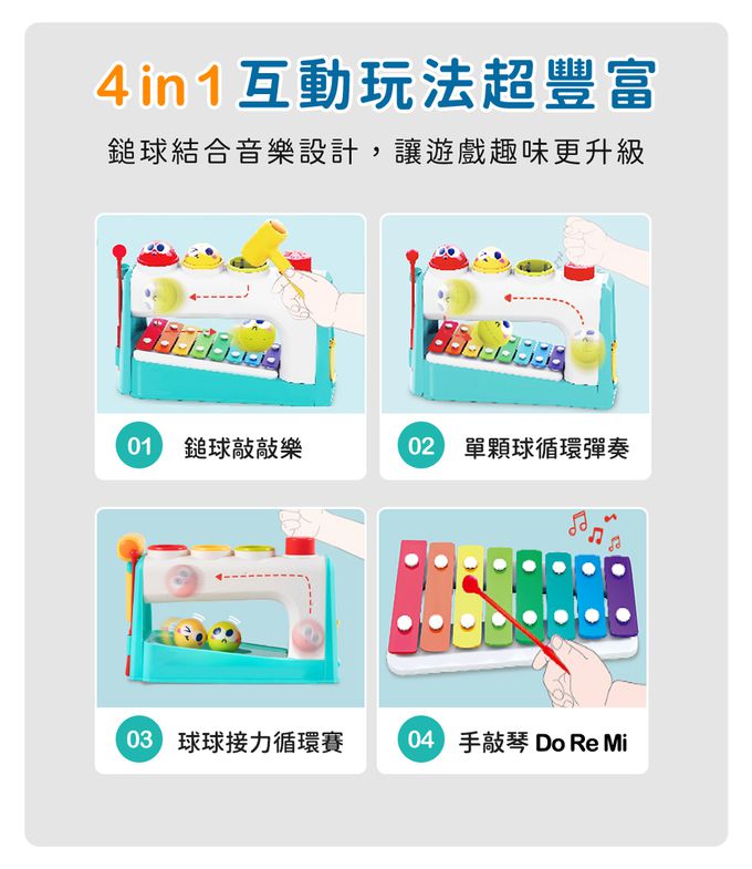 4in1互動玩法,鎚球結合音樂設計