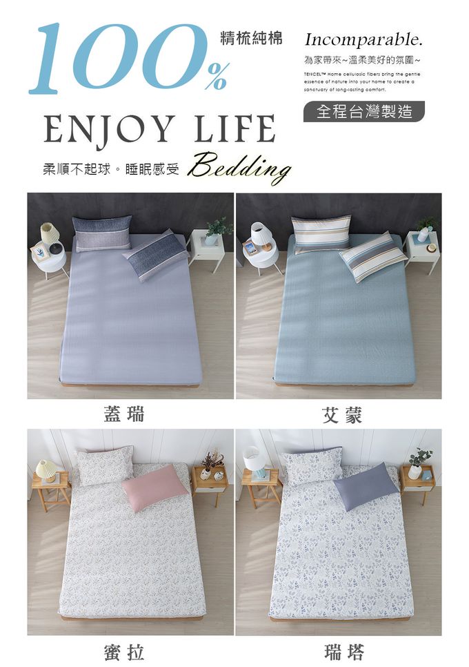 • 品名:雙人床包枕套組 100%精梳棉 純棉