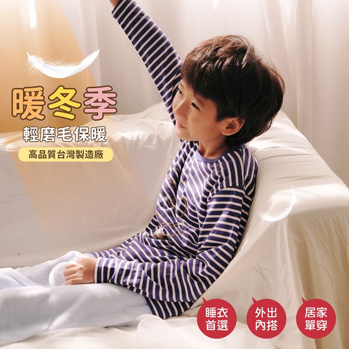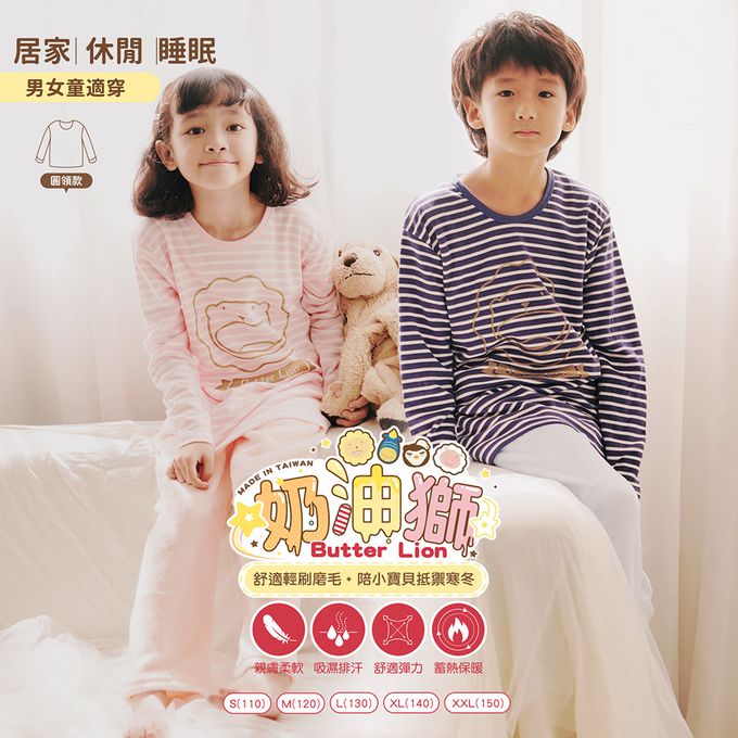 奶油獅兒童磨毛保暖衣-圓領上衣-寶石藍