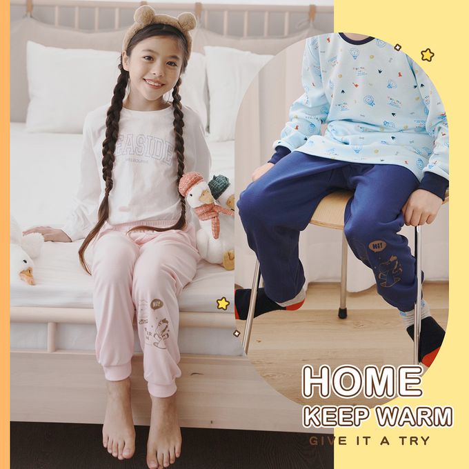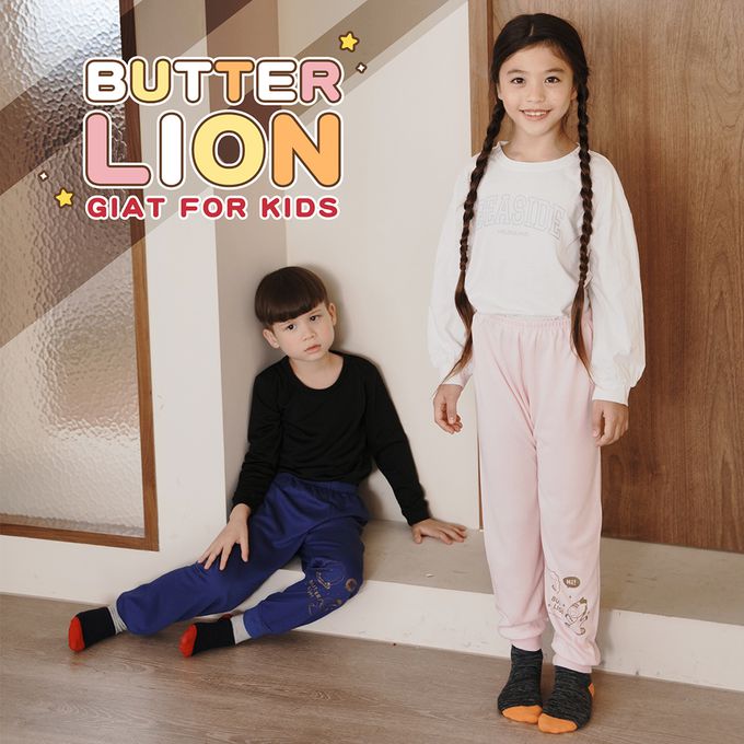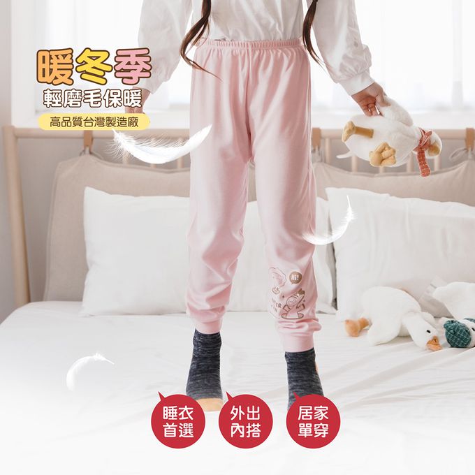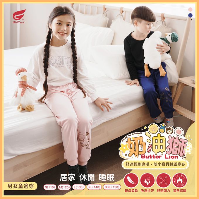 GIAT - 奶油獅兒童磨毛保暖褲-櫻花粉