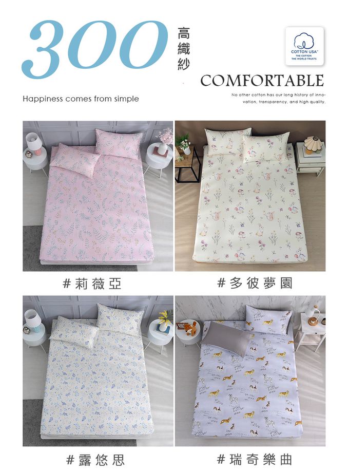 品名:單人床包枕套組 300織美國棉 精梳棉