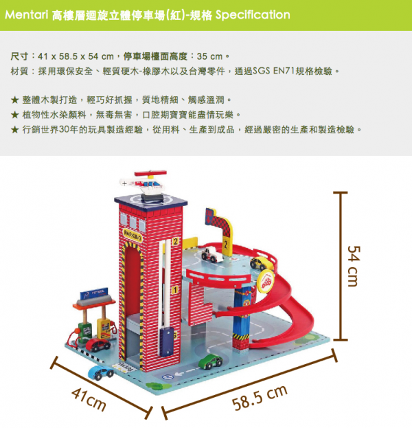 光看到外盒上的停車場圖片,S 姐弟就已經迫不及待想玩了,弟弟 star 說:「好漂亮,是紅色的停車場,我最喜歡紅色了,媽媽可以打開嗎?」。哈哈,事實上是圖片很吸引他,他就會說他最喜歡這個顏色了。