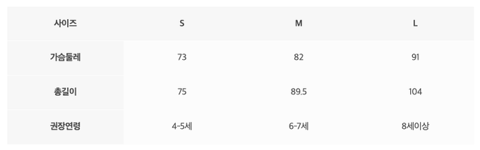 尺寸表由上而下為:尺寸、胸圍、總長、建議年齡