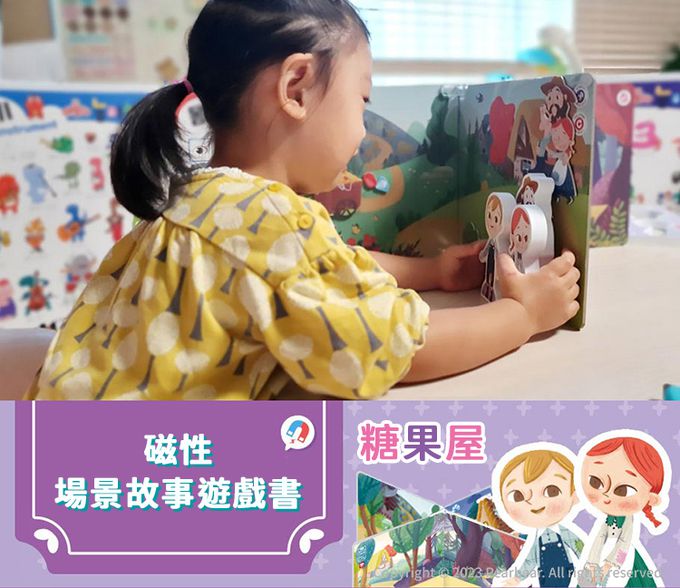糖果屋主題,透過故事遊戲板搭配磁性貼