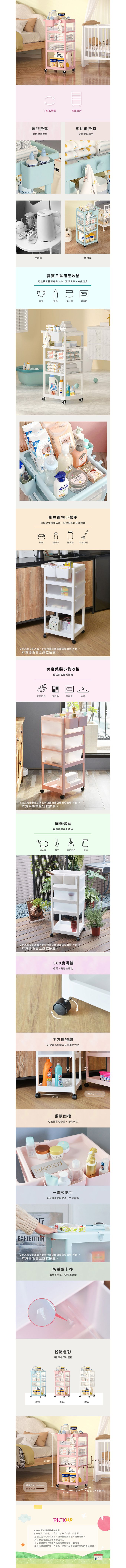 PICKup - 可移式四層抽屜多用途收納推車(3抽)-DIY-霧透抽屜款(粉白)