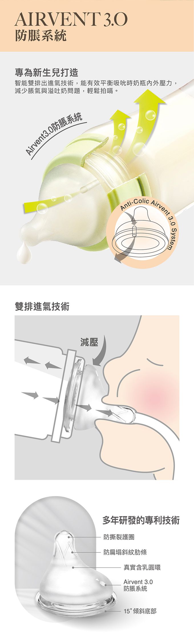 Airvent3.0防脹系統,如親餵吸吮般輕鬆拍嗝