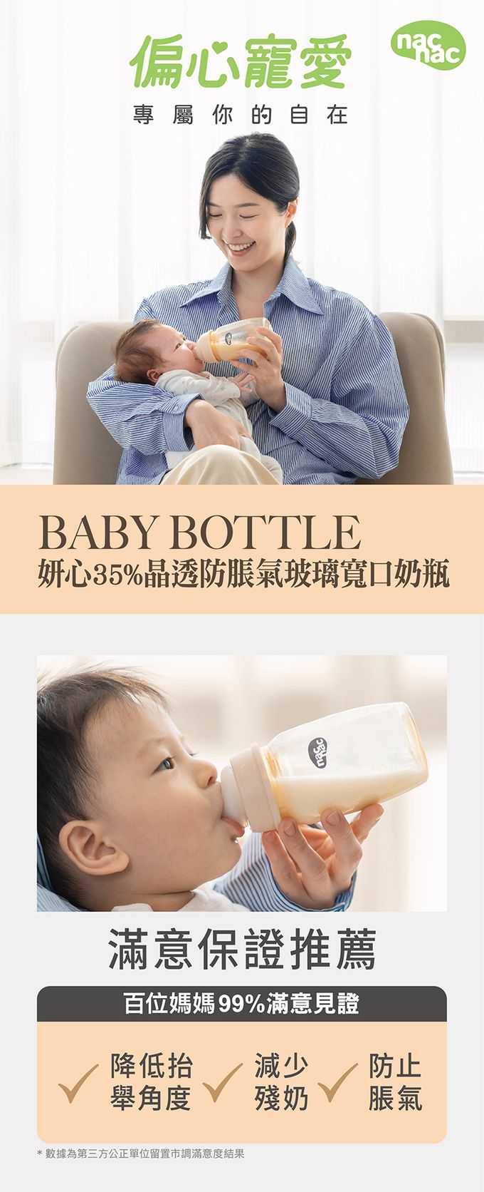 品名:妍心35%晶透防脹氣玻璃寬口奶瓶