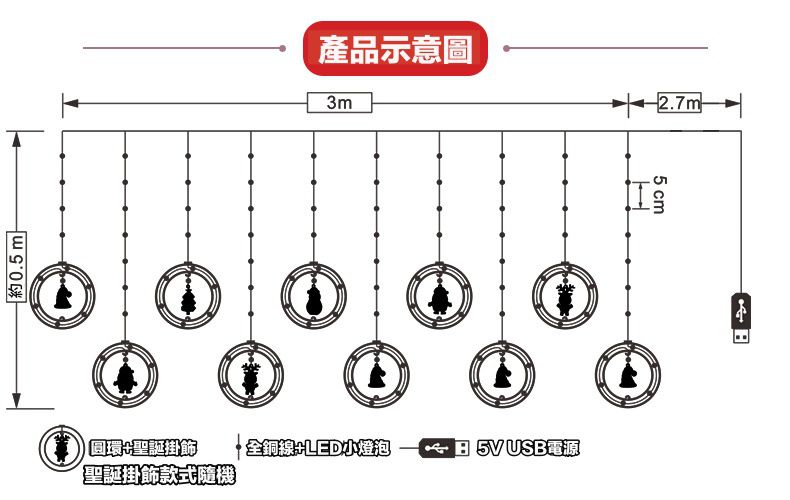 掛飾採隨機出貨,可以根據裝飾場景的設計,決定要把小掛飾掛在哪個燈環裡喔!
