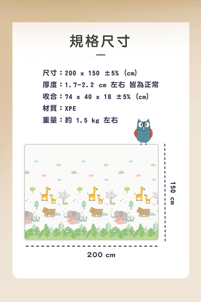 國民地墊XPE經典款2CM加厚雙面摺疊墊-貓頭鷹小鎮 C3