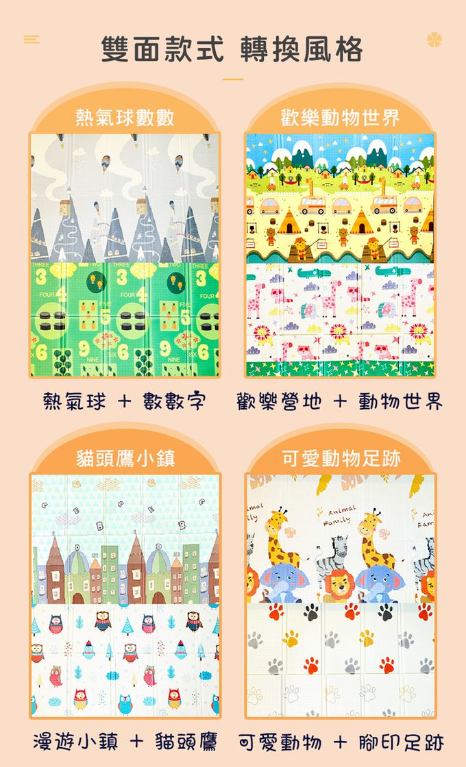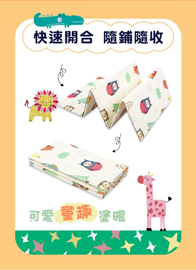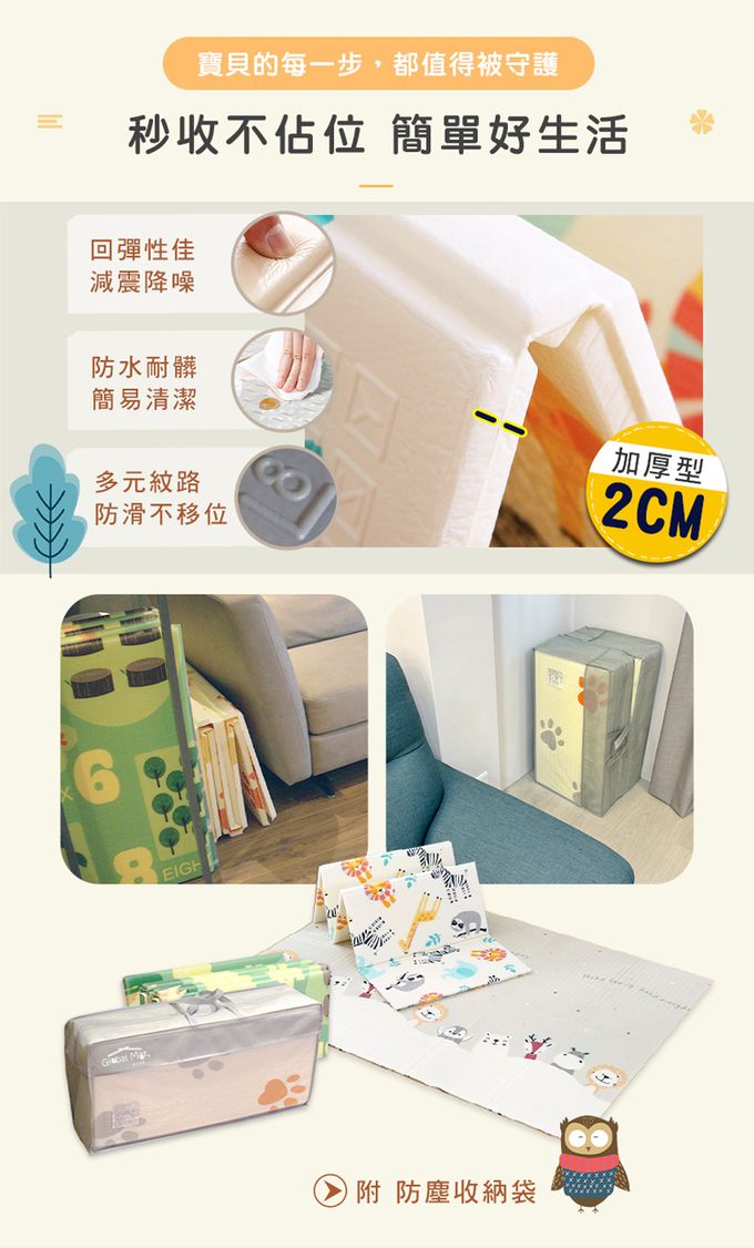 品名:國民地墊XPE經典款2CM加厚雙面摺疊墊-貓頭鷹小鎮 C3