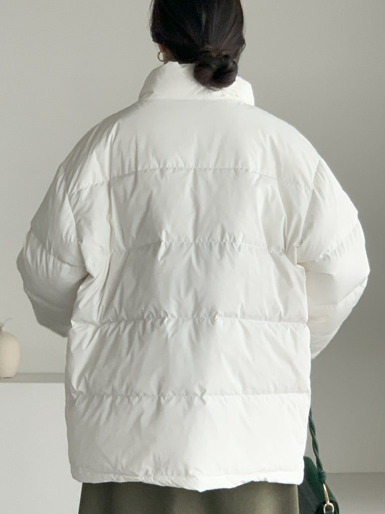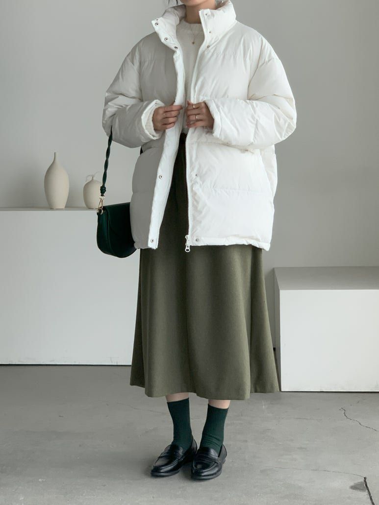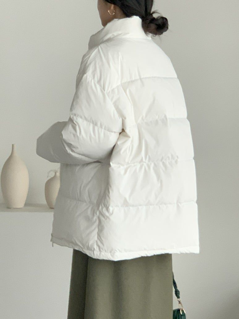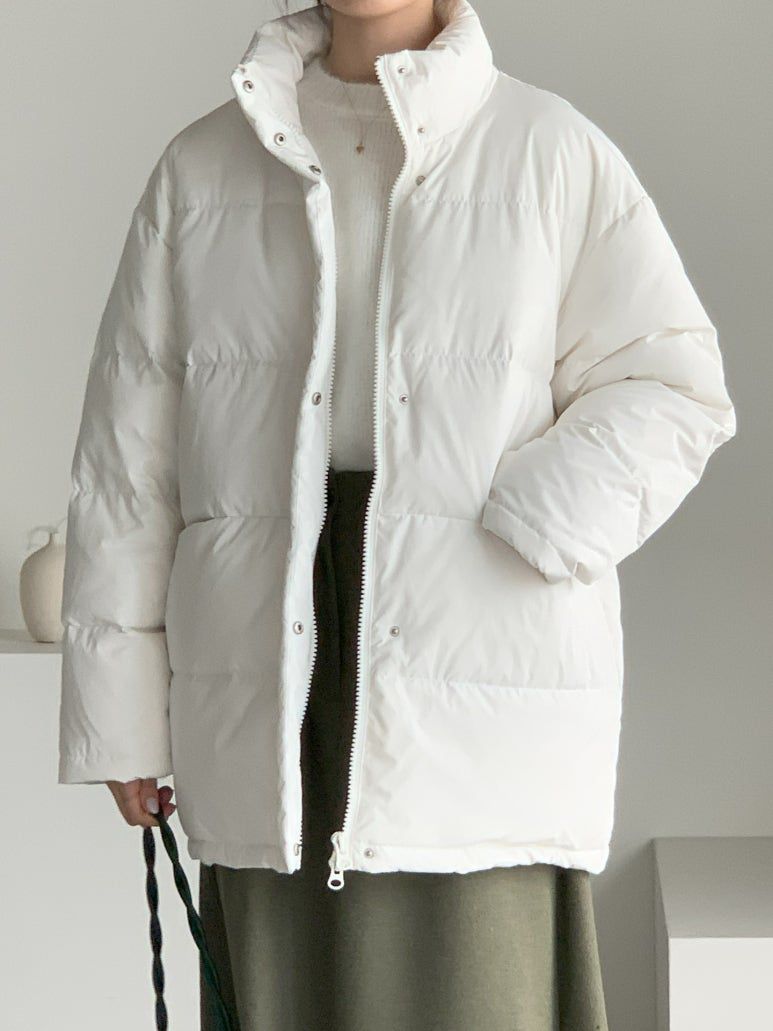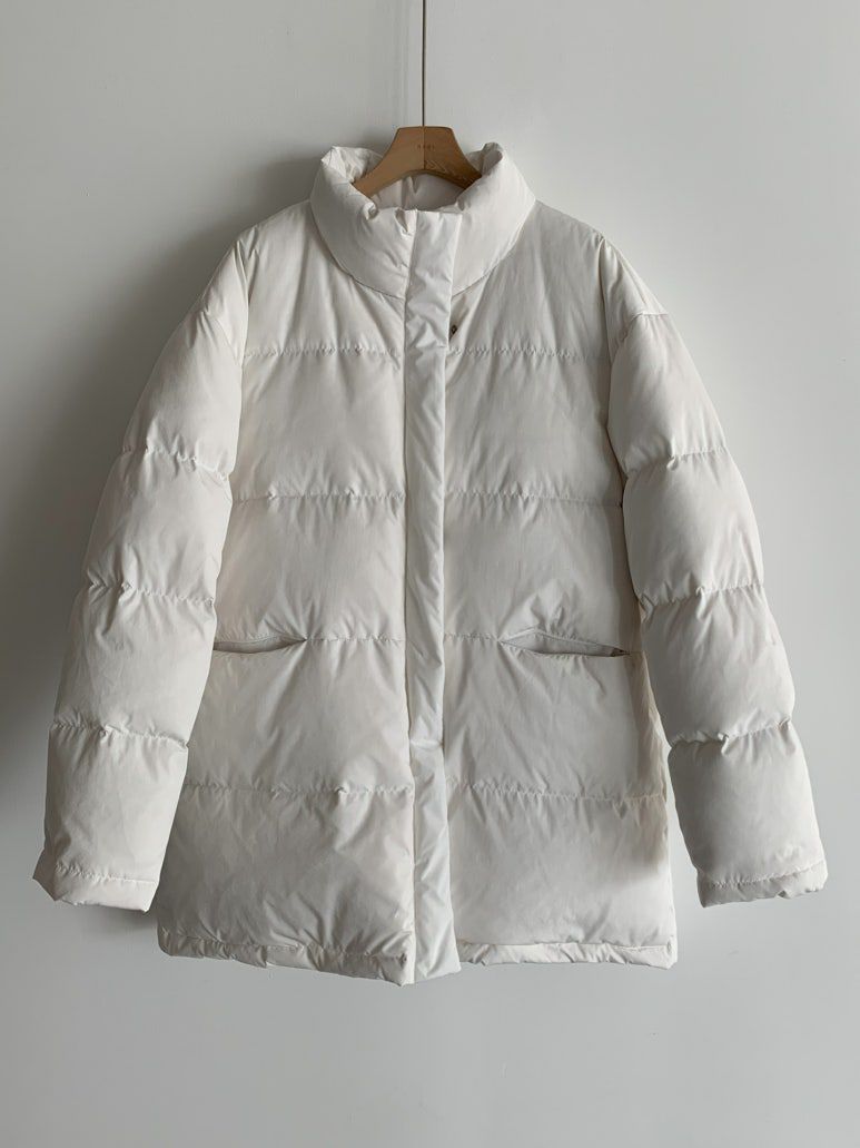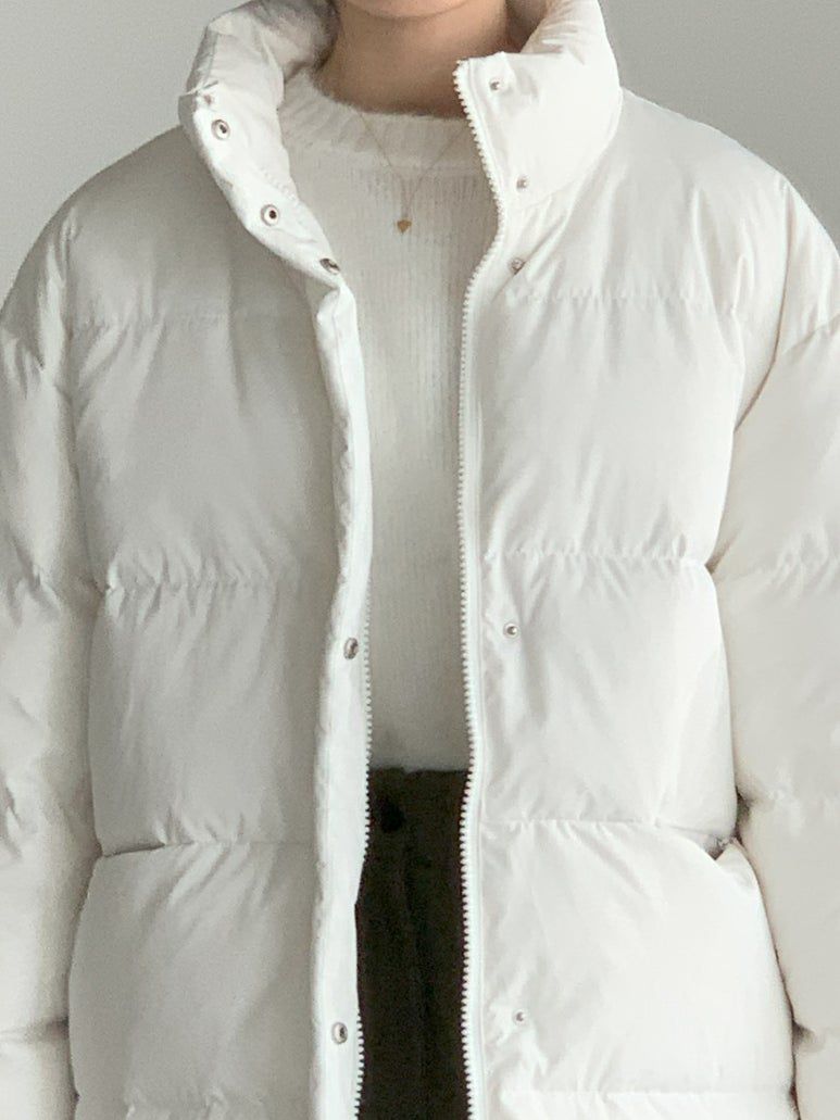 韓國女裝連線 - (70%鴨絨)保暖羽絨中長版外套-象牙白 (FREE)