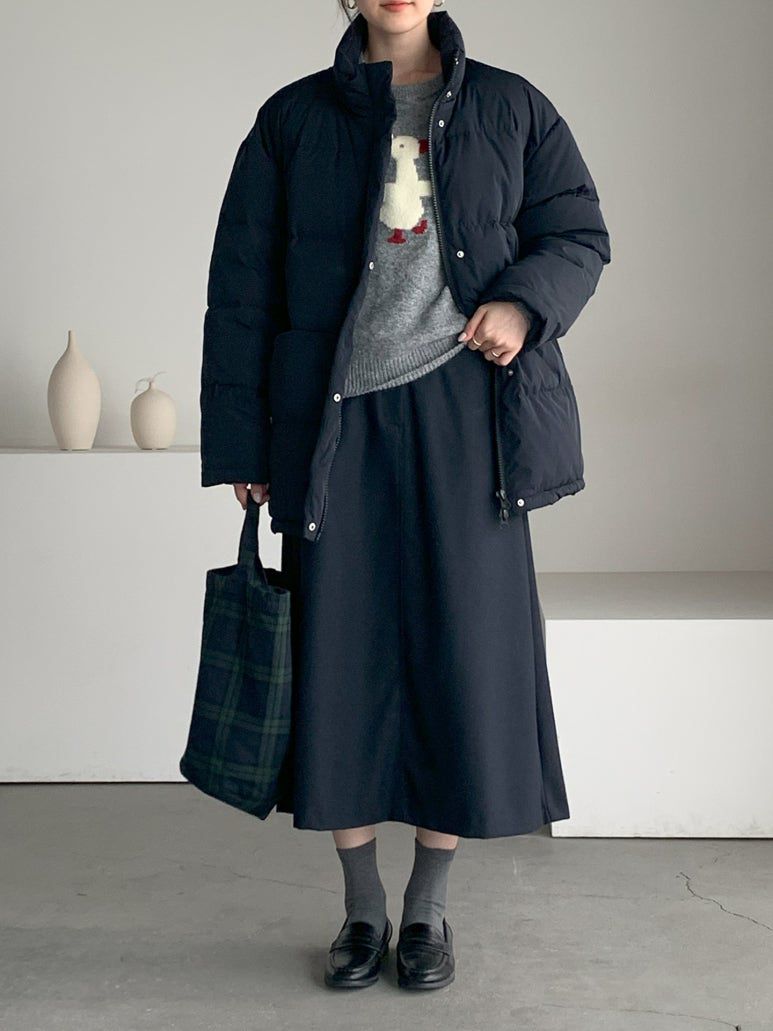 韓國女裝連線 - (70%鴨絨)保暖羽絨中長版外套