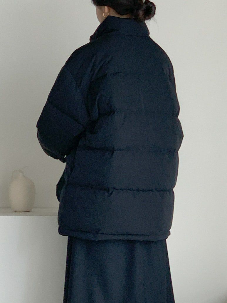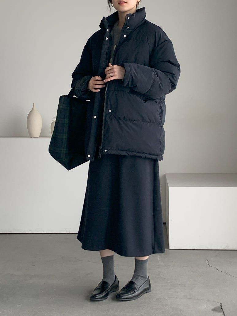 韓國女裝連線 - (70%鴨絨)保暖羽絨中長版外套-黑藍 (FREE)