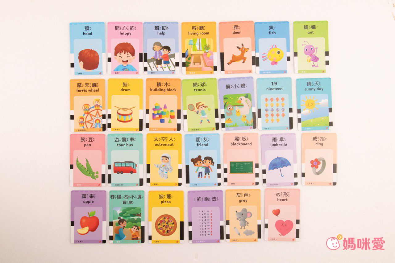 媽咪覺得有個玩法可以參考:卡片的左下方都有標示主題,年齡再大一點點的孩子就可以考考他們『分類』。比如說媽咪問:「鼓是分類在哪呢?」孩子就可以開始思考鼓是樂器還是玩具還是其他⋯等等,這樣的延伸學習也能提升孩子的邏輯思維能力!