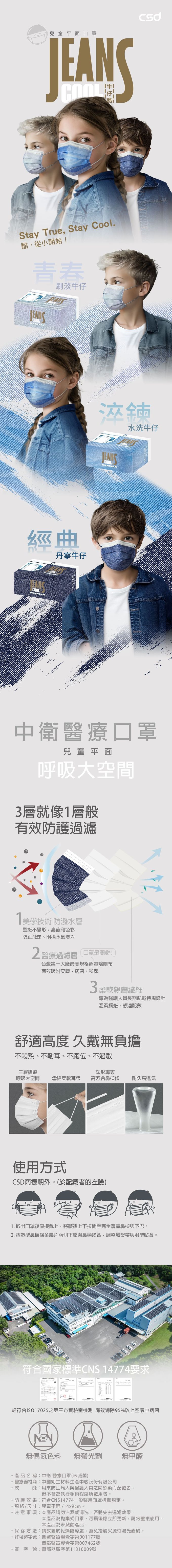 品名:醫療口罩-兒童平面-丹寧牛仔 (30片/盒)