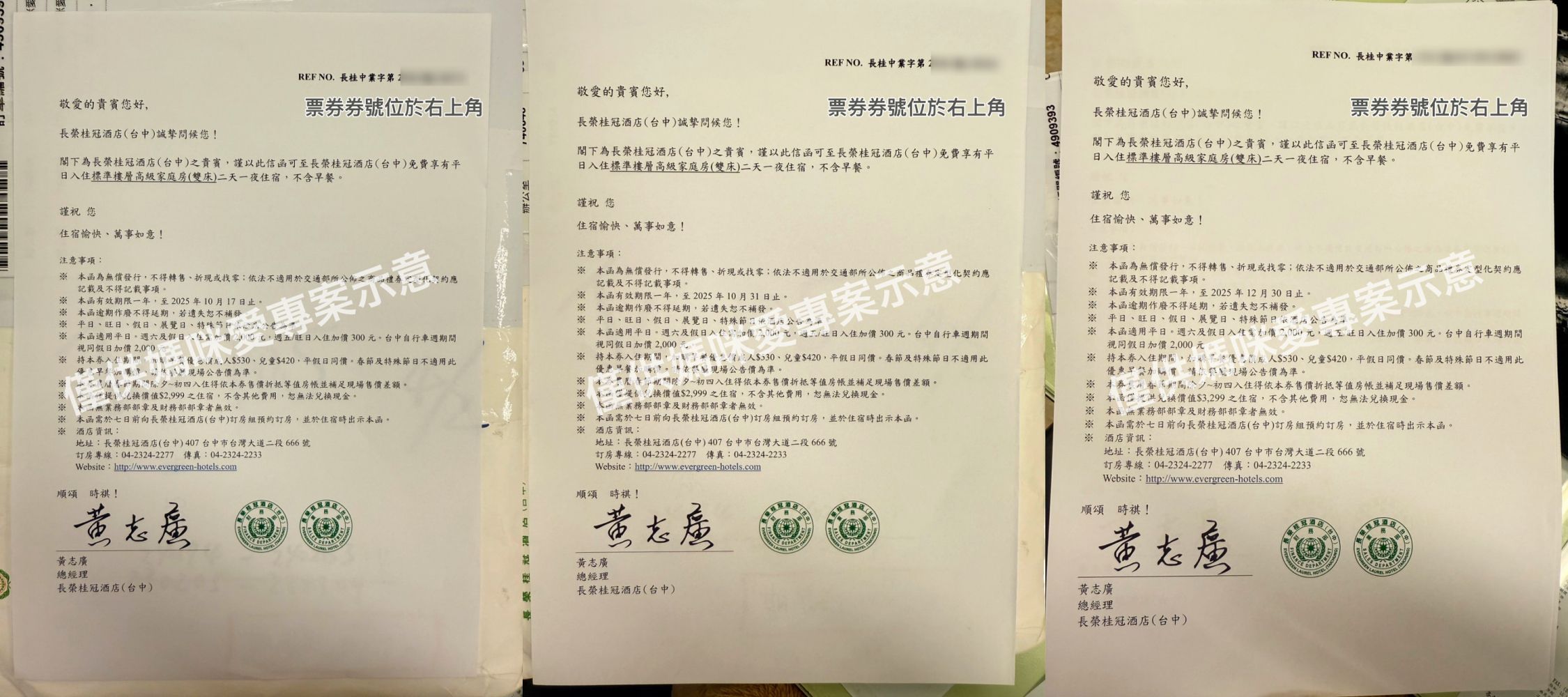3. 住宿票券形同現金,如收到後遺失,恕無法補發!