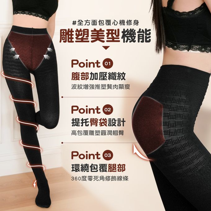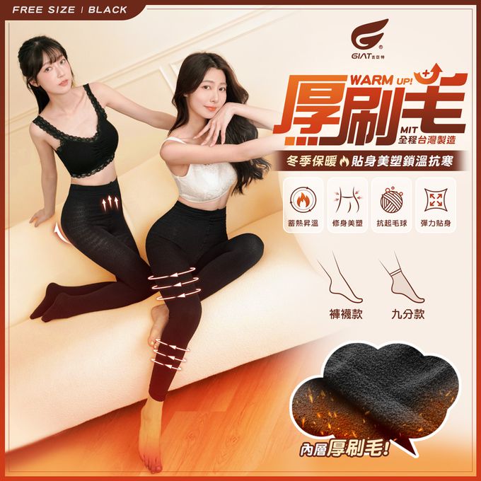 180D厚刷毛保暖褲襪-九分款-黑色 (FREE)