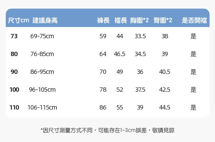 90cm(可開襠)、100cm(可開襠)、110cm、120cm