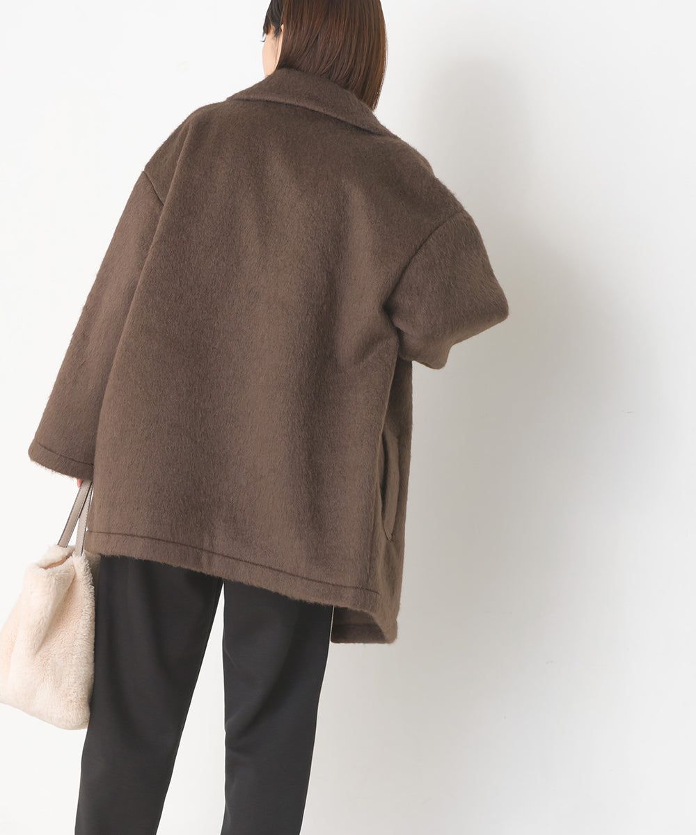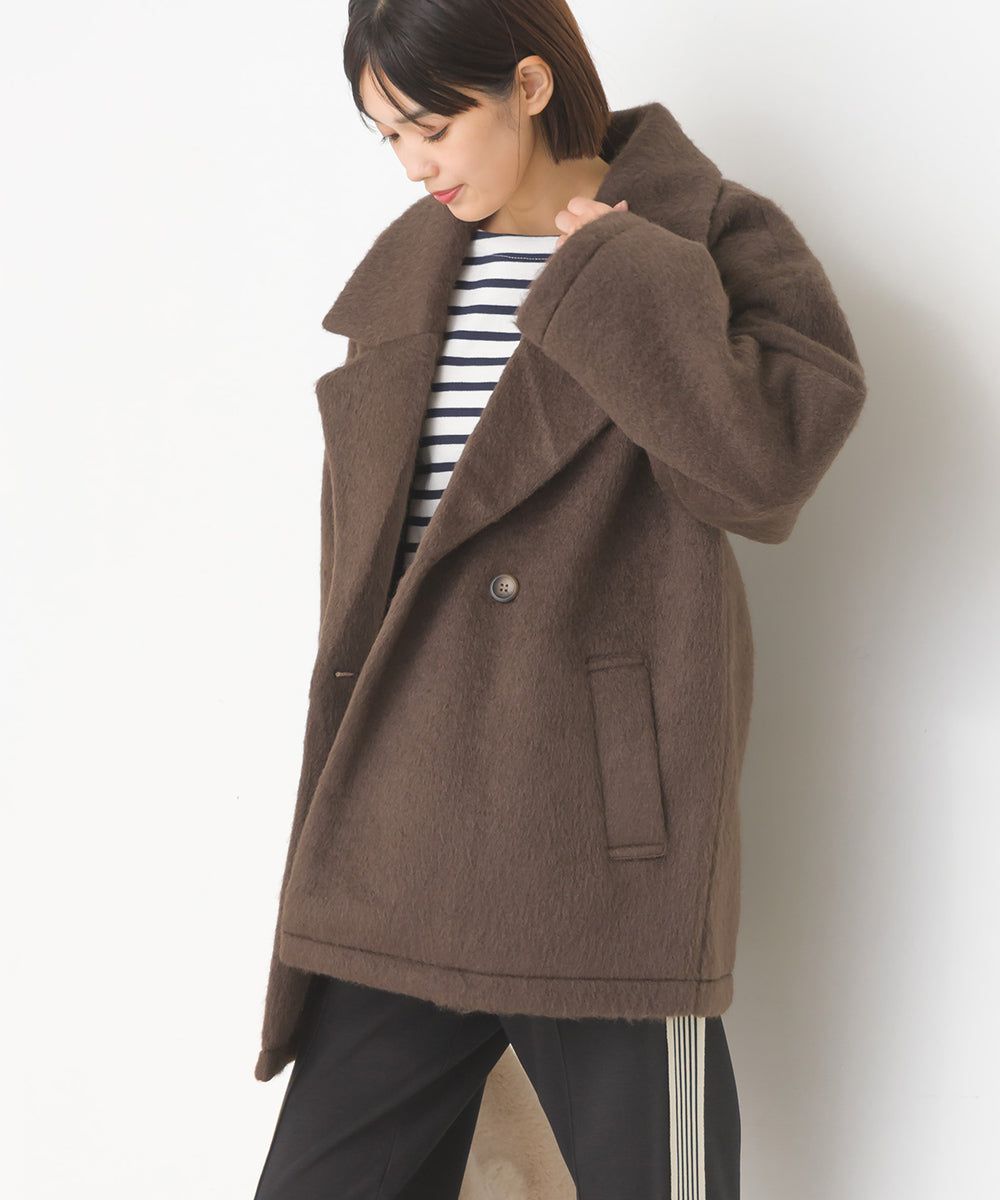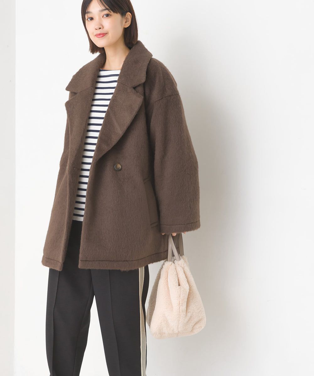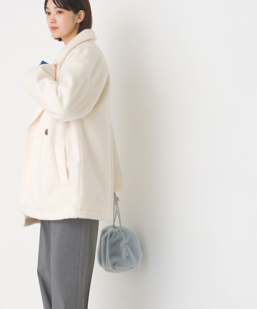 日本 OMNES - 微刷毛百搭西裝領雙扣修身大衣-象牙
