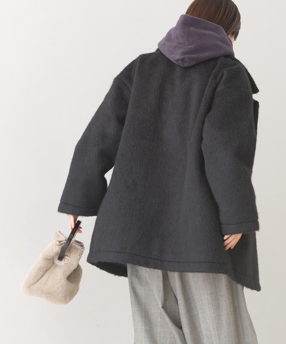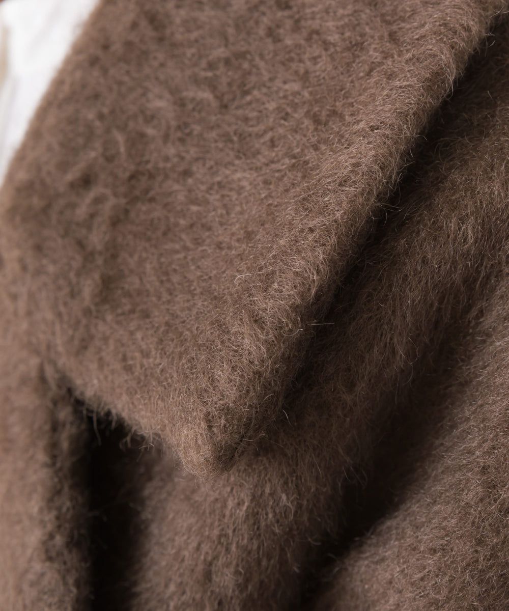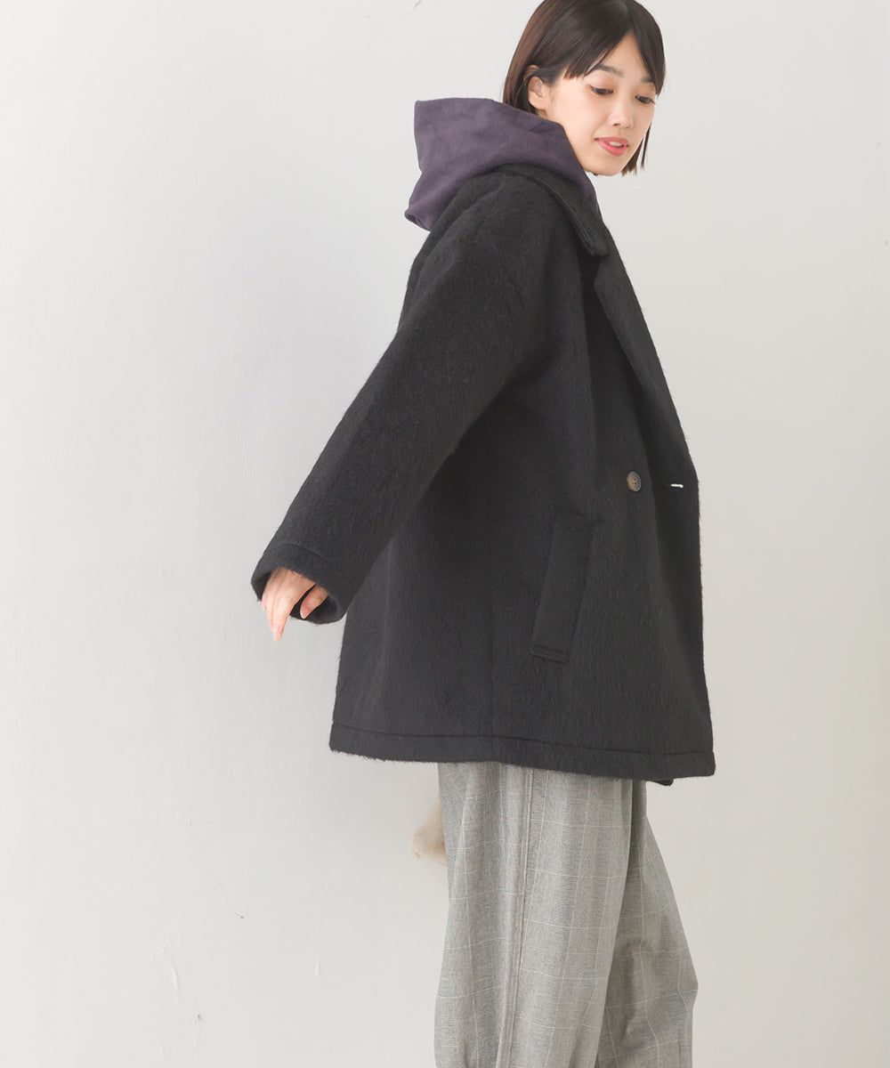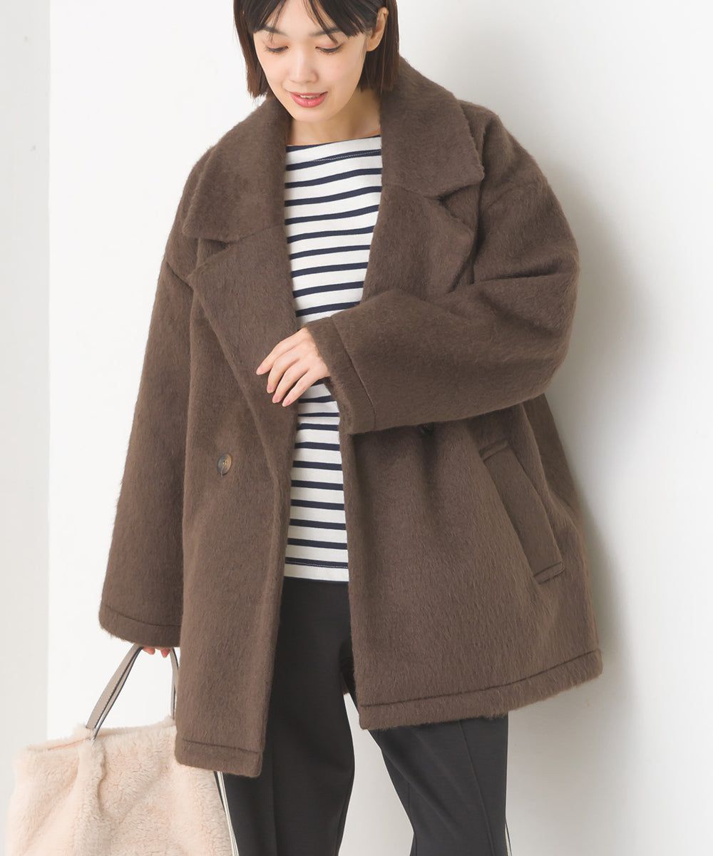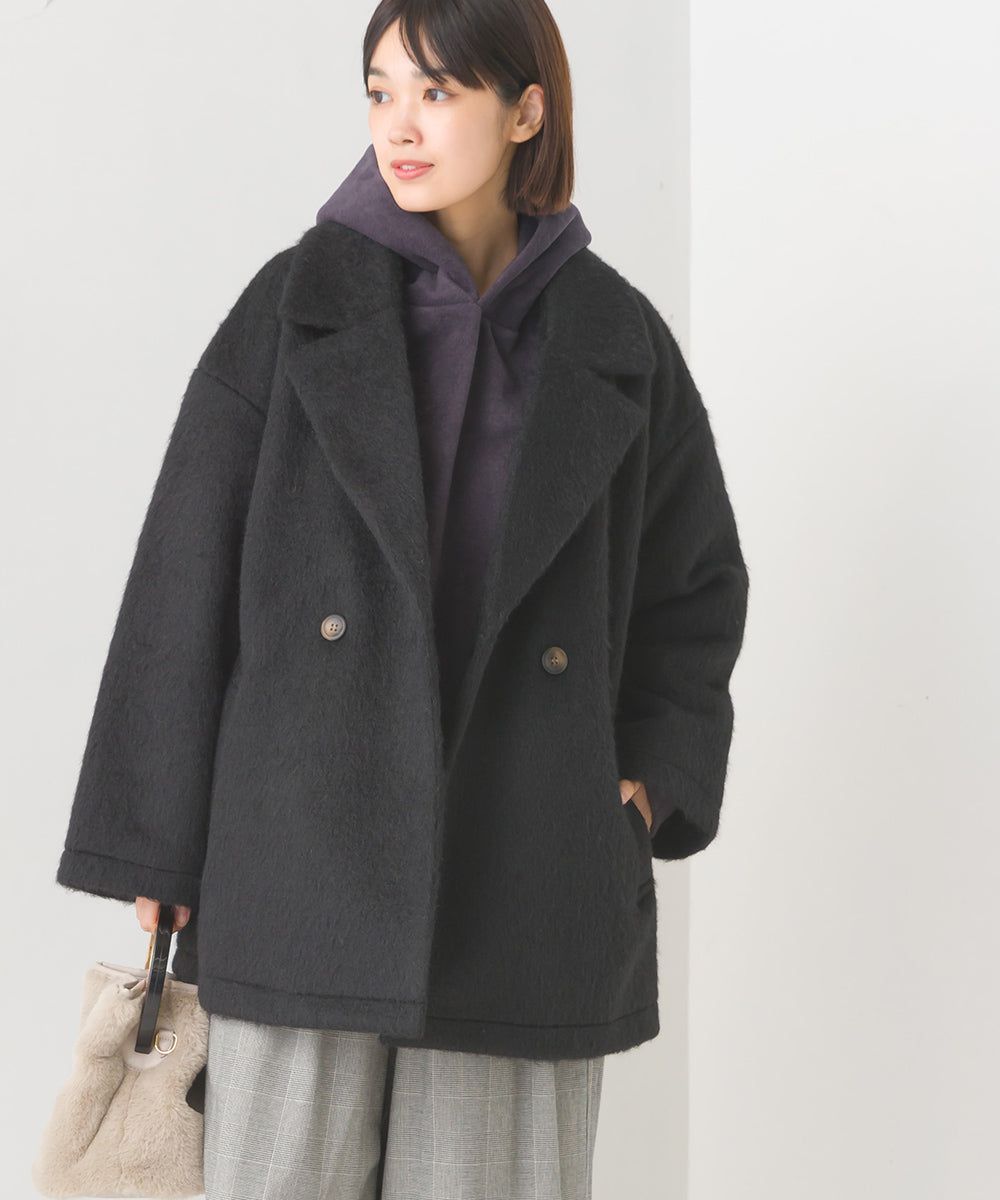 日本 OMNES - 微刷毛百搭西裝領雙扣修身大衣-象牙