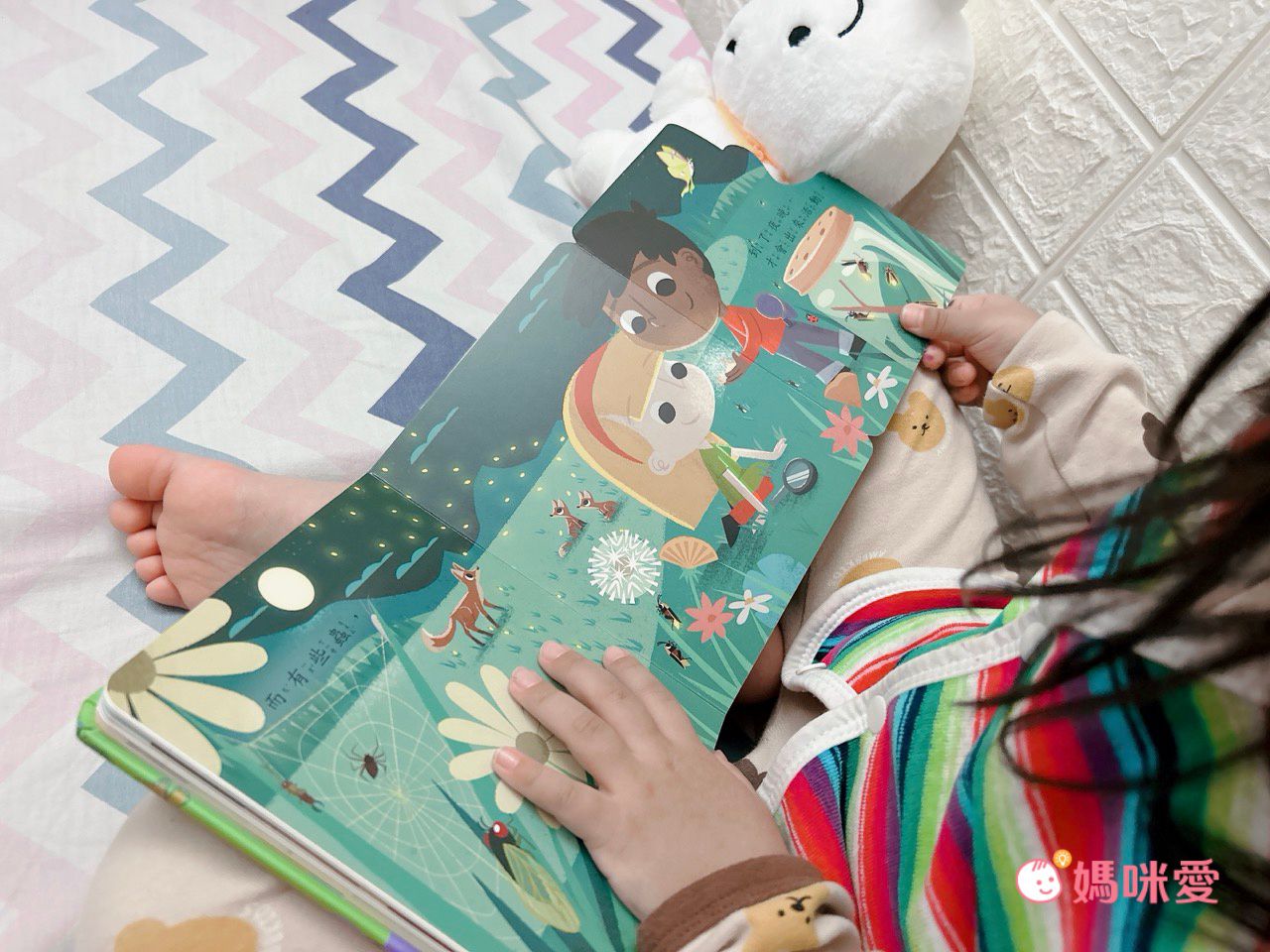 在孩子閱讀過程中,爸比媽咪也可以在一旁適時互動引導,例如:『小朋友~你們知道有哪些昆蟲會用觸角去感知周遭嗎?』『像是蝴蝶、蜜蜂、黃蜂都會呦!』