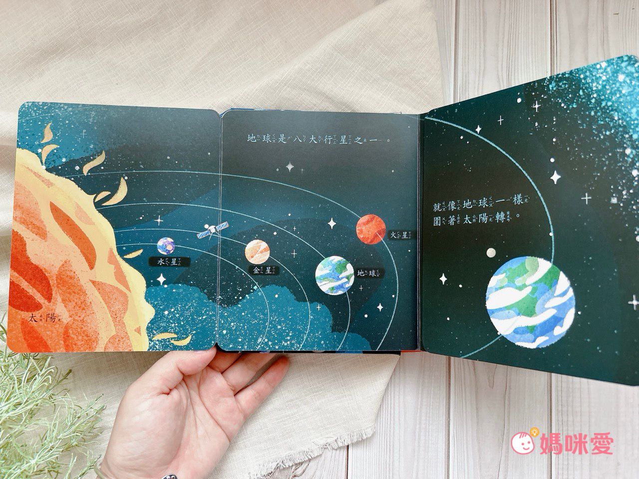 離我們生活遙遠又難以接觸的就是天空之外!對於在幼兒園校外教學也有機會到天文館走走的王美相對比較認識宇宙和星球是什麼,這次就能從小小的方塊書裡挖掘外太空