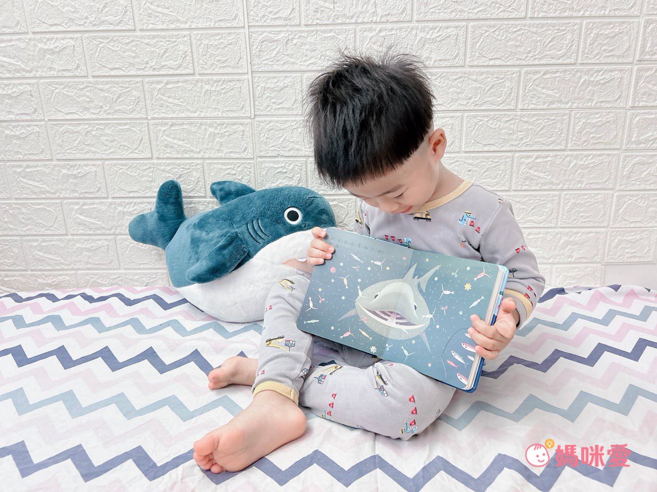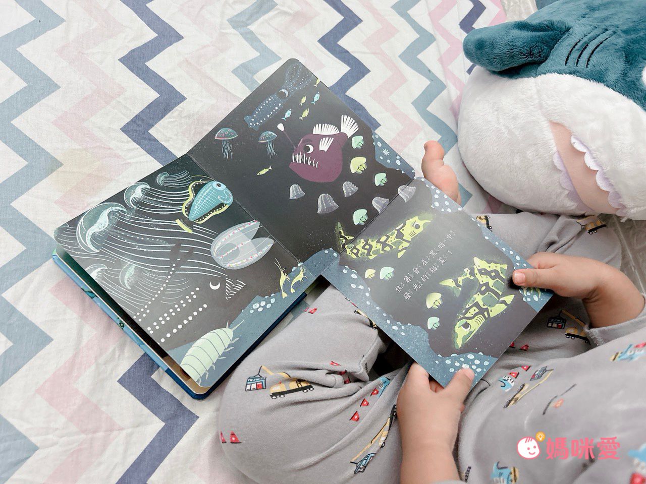 王紅最喜歡的《鯊魚,在哪裡?》因爲他非常喜歡鯊魚,所以他每天都會拉著媽媽和他一起認識更多鯊魚。