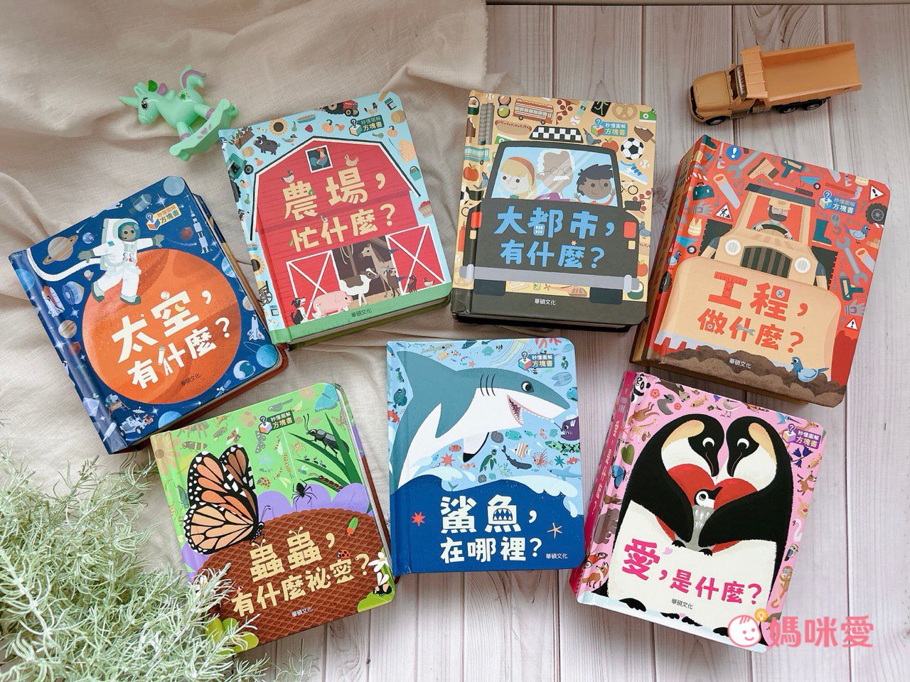 《愛,是什麼?》、《蟲蟲,有什麼祕密?》、《鯊魚,在哪裡?》、《農場,忙什麼?》、《工程,做什麼?》、《大都市,有什麼?》、《太空,有什麼?》