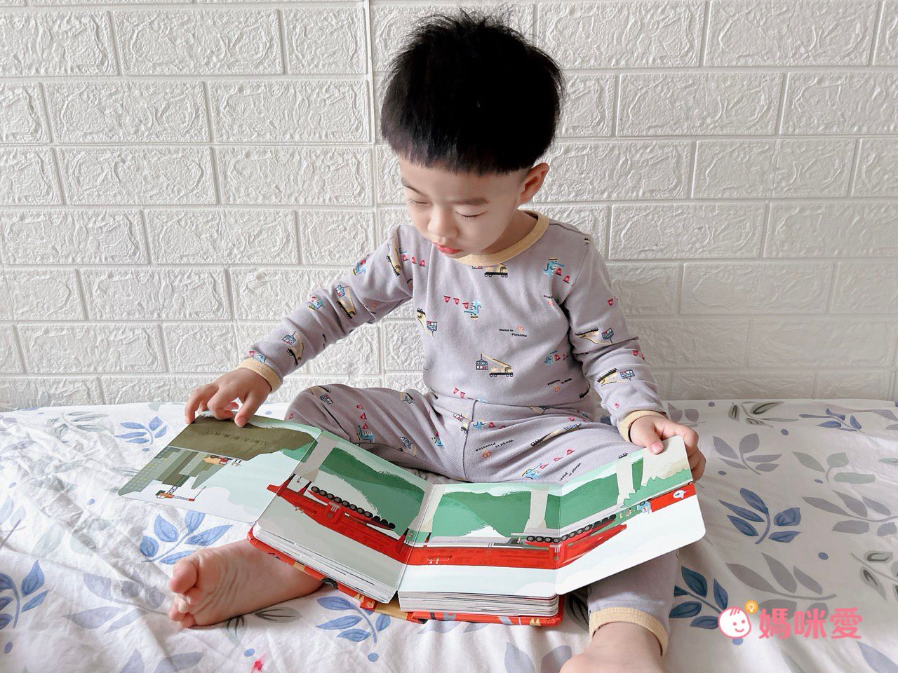 當翻開第一頁時只會顯示『愛,』這時孩子們可以思考一下愛是什麼,再翻到下一頁就會串成一個短句:『愛,是一趟旅程。』