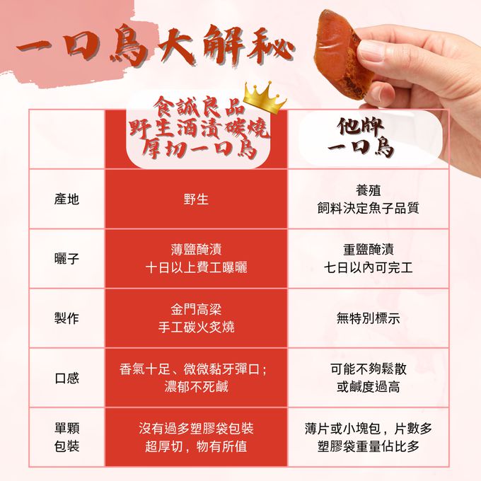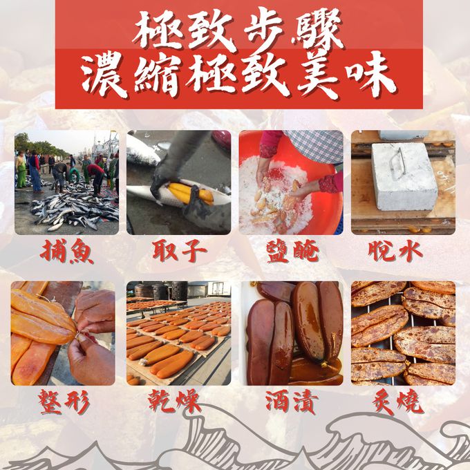 無腥味、低鹽少鈉、無人工添加劑, 傳統工法比一般的烏魚子更耗時耗工!