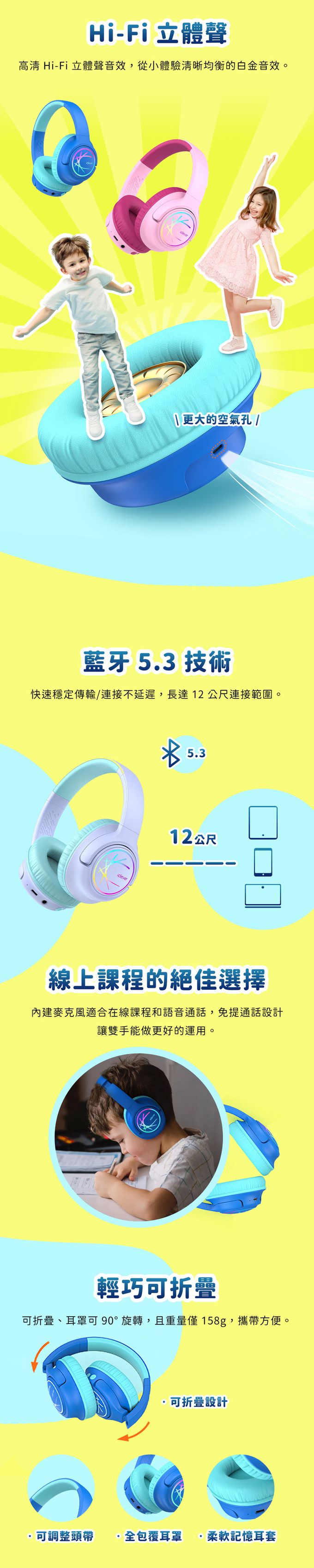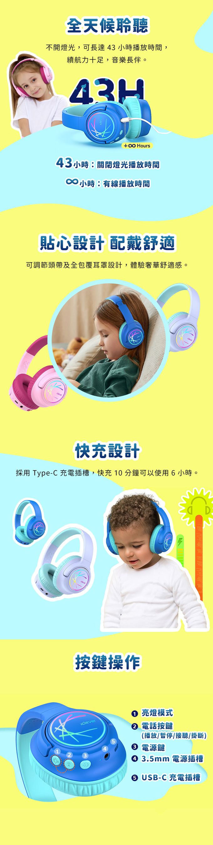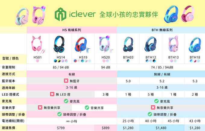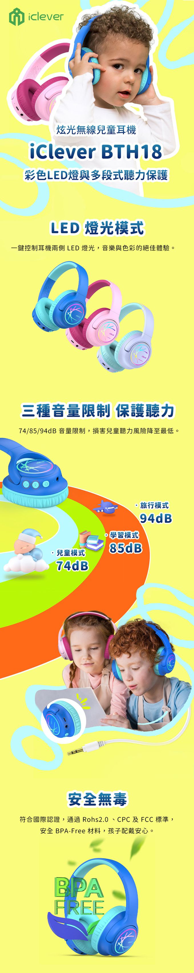 產品名稱:iClever BTH18 炫光無線兒童耳機