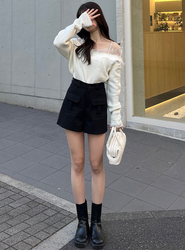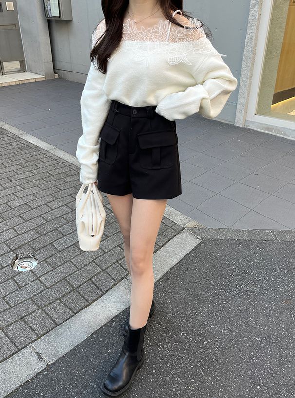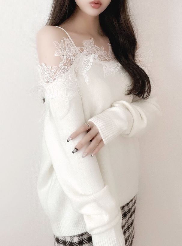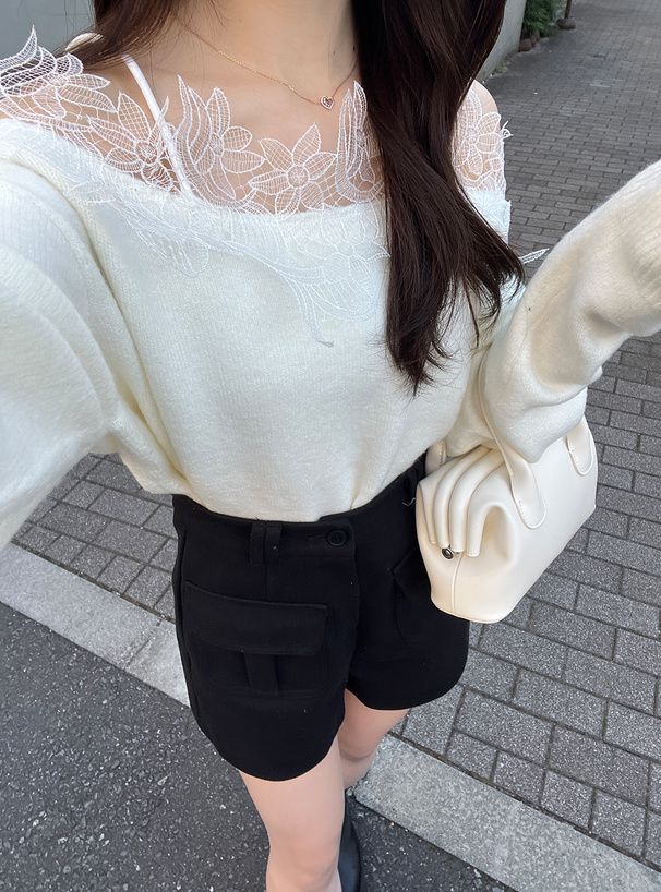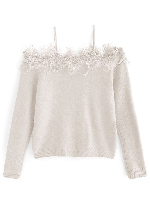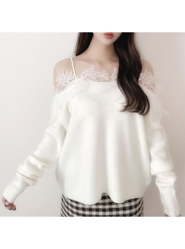 花卉蕾絲露肩針織上衣