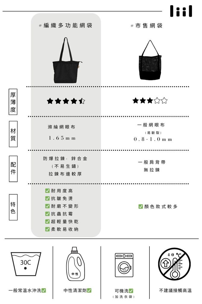 理理 liil - 輕隨性編織純色多功能網袋-黑