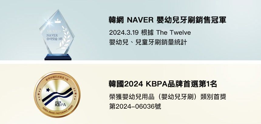 他們家的牙刷真的很厲害!還獲得韓網NAVER嬰幼兒牙刷銷售冠軍2024 KBPA品牌首選第1名2023韓國消費者滿意度大賞 等多個獎項 ✧