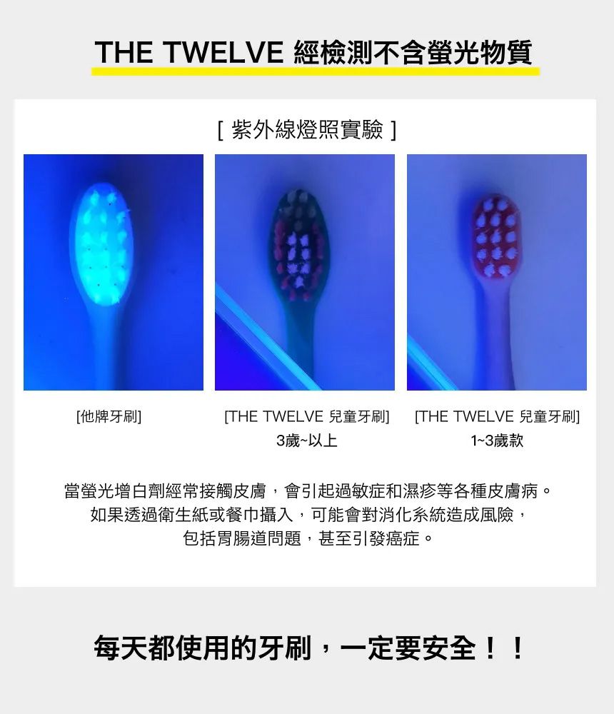 THE TWELVE 的牙刷經過檢測,皆不含螢光物質!媽咪們可以安心讓寶貝使用唷~