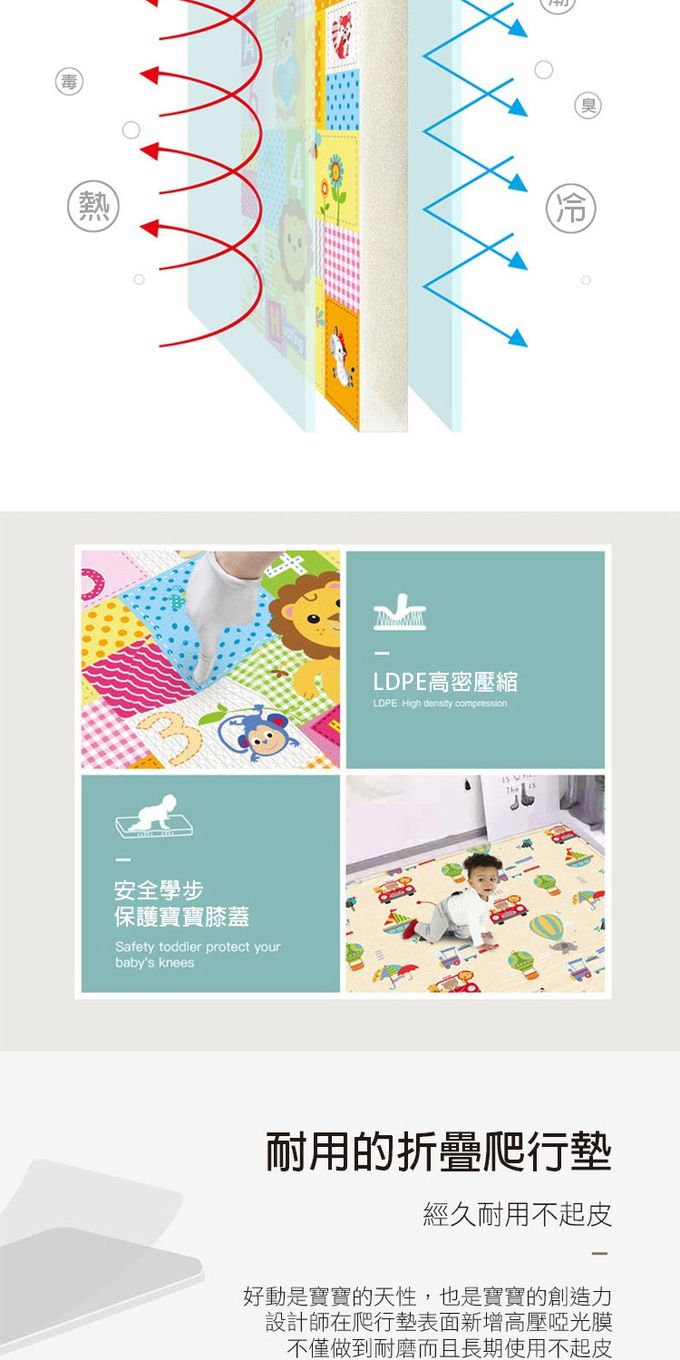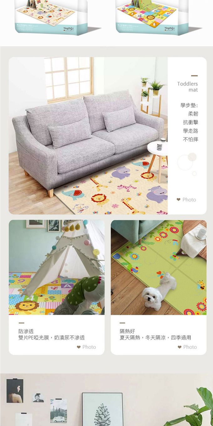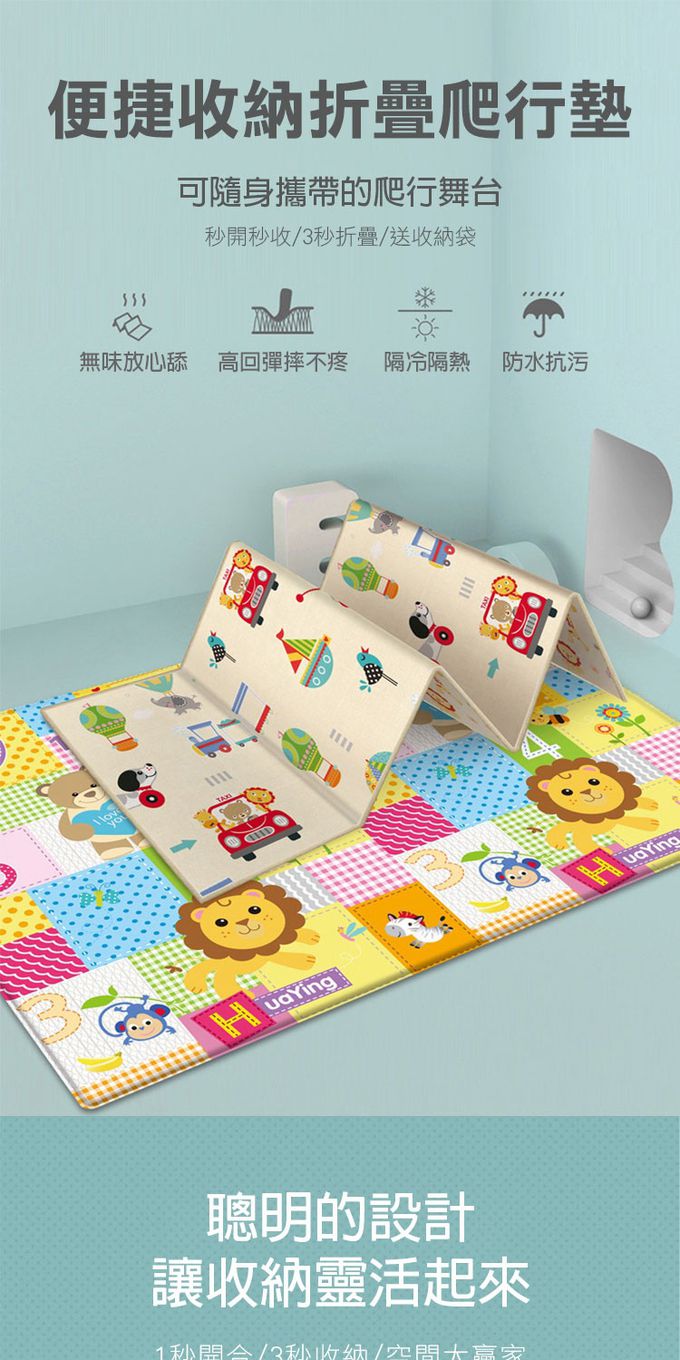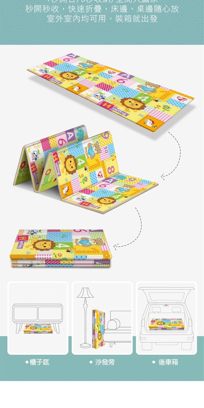 2.大尺寸多功能地墊,可使用於午睡、遊戲、爬墊、防撞、一般地墊使用。