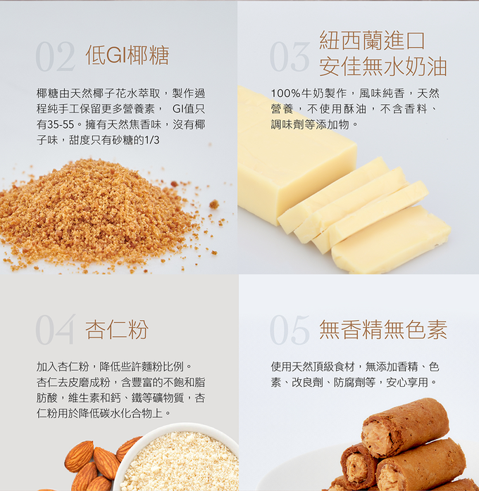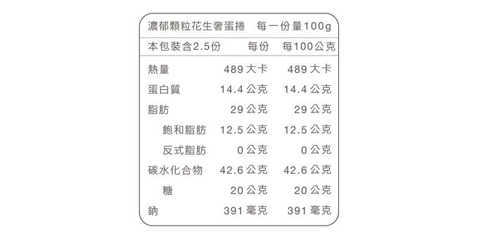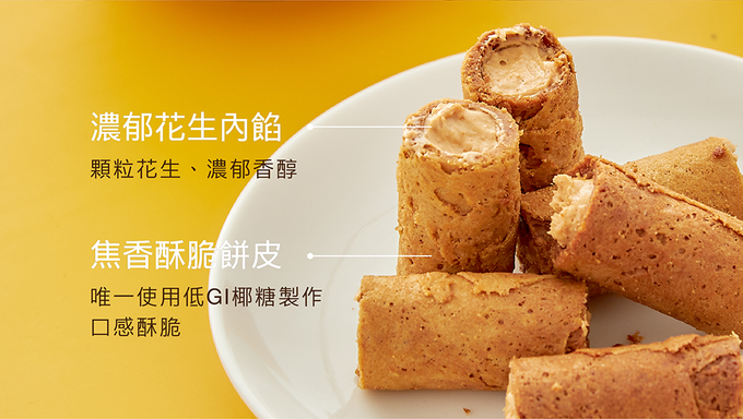 ● 一盒16入,內盒精裝升級防撞包裝,送禮自用更安心大方● 全台唯一使用『低GI椰糖』製作奢蛋捲✨● 日本昭和薄力粉X安佳無水奶油採用一口吃設計,特選顆粒飽滿花生,研磨成濃郁顆粒花生醬,滿滿灌入於蛋捲中,花生香氣超濃郁!一口咬下香醇滑順的醬料,口中環繞的迷人風味,讓人忍不住一根接一根。✳️不可與其他冷凍商品併單❗️✳️【注意】蛋捲在配送中可能會有輕微破碎,為正常現象,敬請見諒!✳️ 本商品天然食材製作,蛋捲流心為正常現象,請安心享用