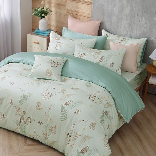 雙人兩用被套 300織美國棉 精梳棉-狐狸艾莉森-綠