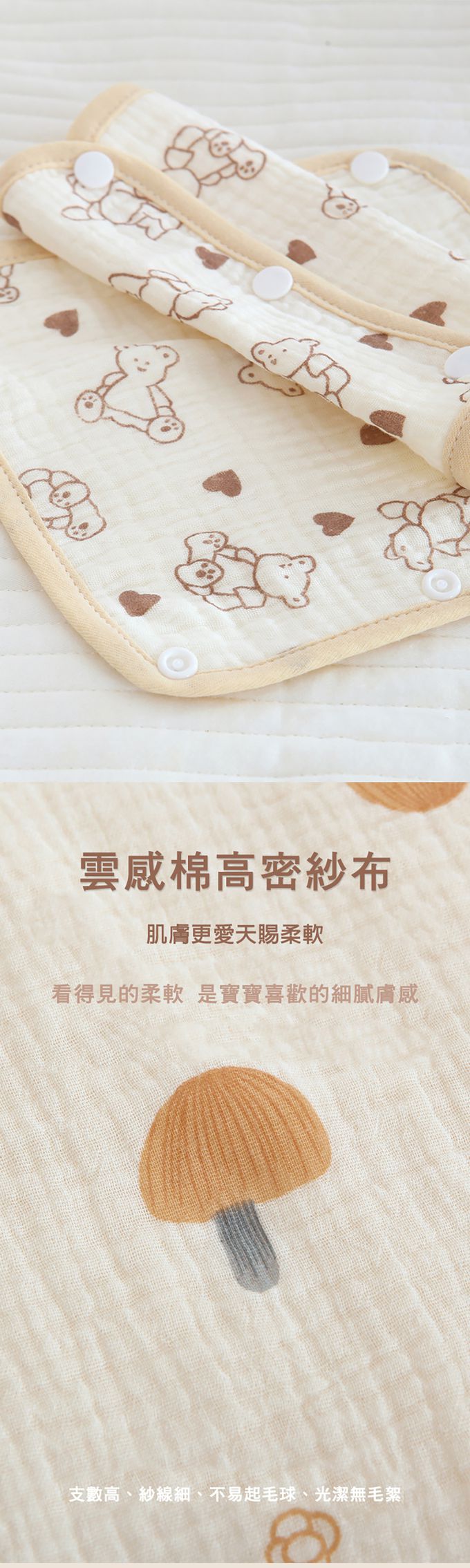 • 雲感棉高密紗布,愈洗愈柔軟不易起毛球