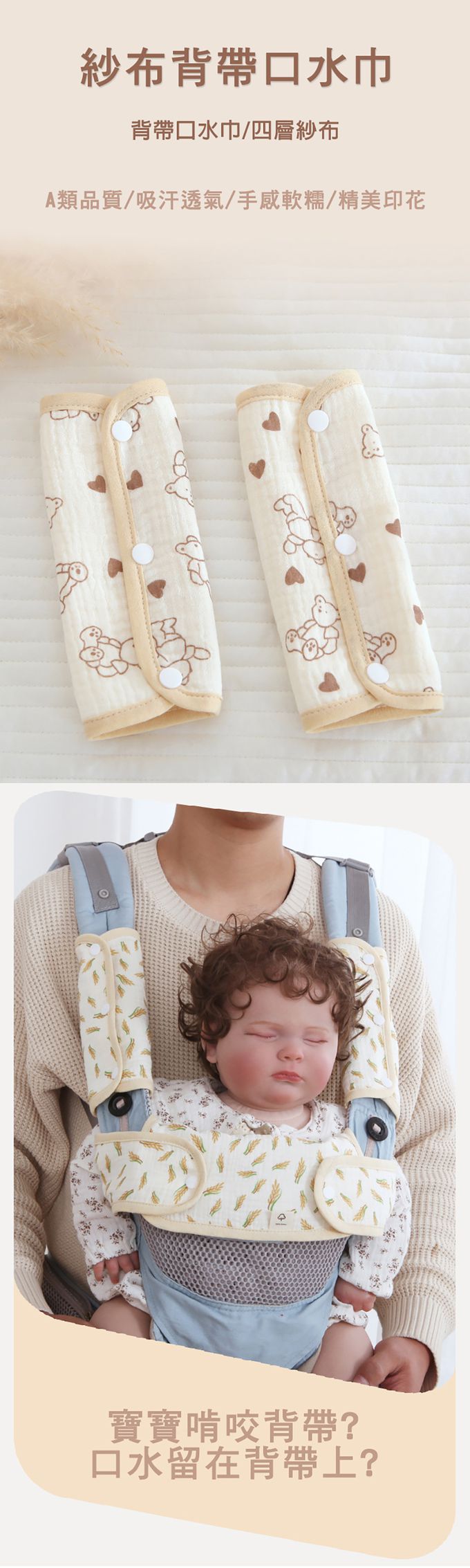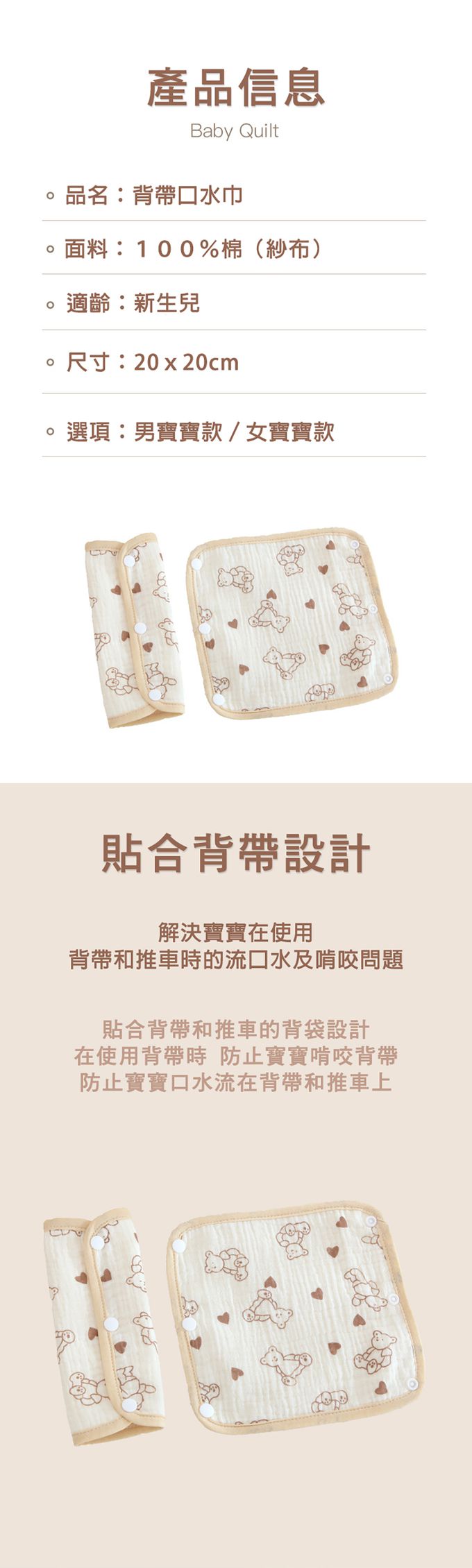 • 品名:6條入 背帶口水巾 四層紗布口水巾 背巾口水巾