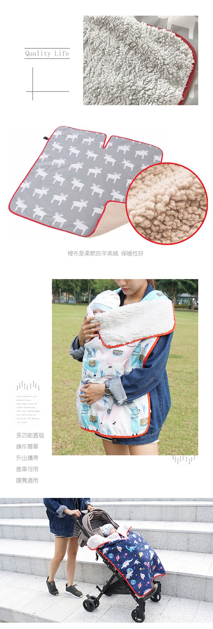 1.一毯多用,秋冬寶寶外出必備