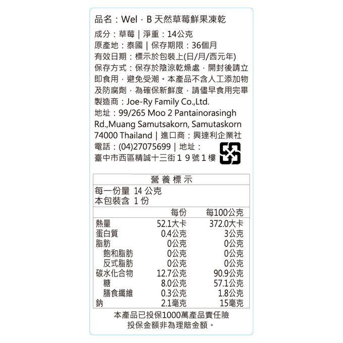 商品重(容)量:內含大米餅(草莓)30g+優格豆豆餅20g+穀物棒棒40g+韓國草莓果乾12g+泰國草莓果乾14g各1包