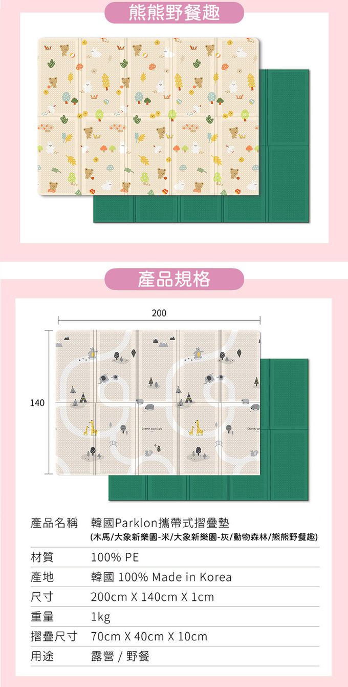 韓國 Parklon 帕龍 - 攜帶型單面立體回紋摺疊墊-繽紛動物