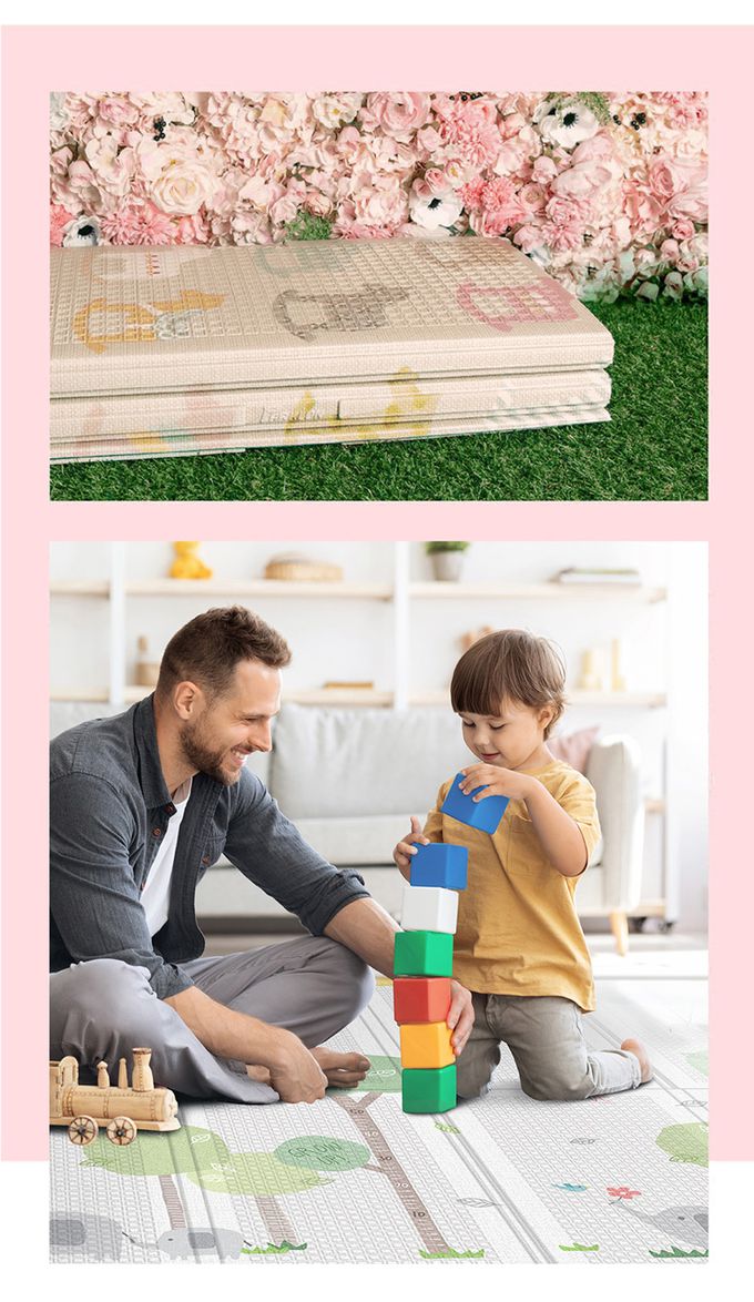 折疊墊的材質很輕巧,髒污也容易擦拭!挺適合放在室內跟戶外。